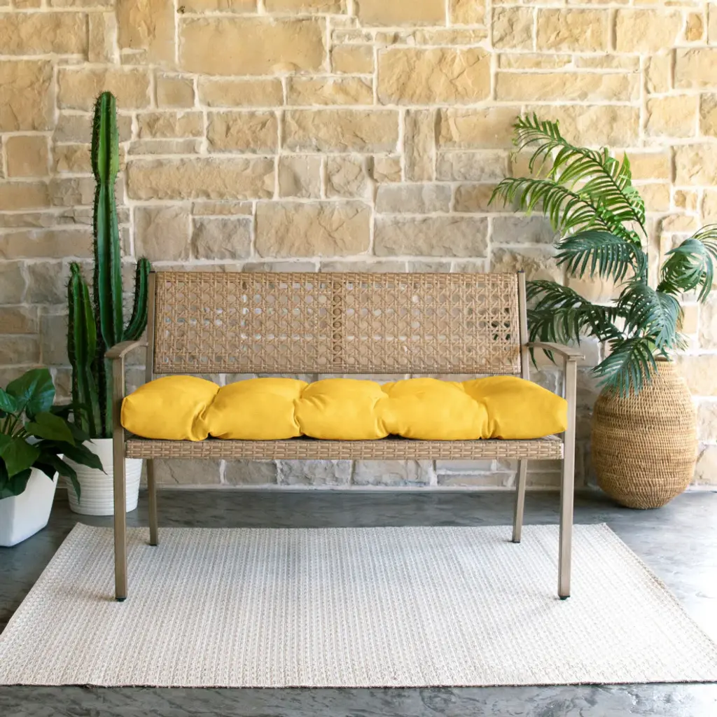 Sunbrella Canvas Indoor/outdoor Tufted Bench Cushion, Sunflower, 55x18x2"