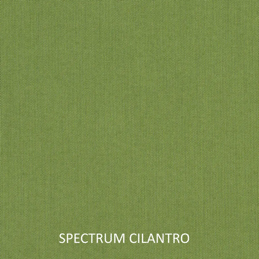 The palette for Sunbrella Spectrum Cilantro is created with an earthy green hue. Maximize seating in a patio or poolside area. This neutral-colored outdoor bench cushion provides comfortable seating on an outdoor bench or an interior window seat. Soft, durable outdoor fabric provides beautiful cover over pure recycled fiber, resisting weather and sun damage. Remove its cover through a zippered enclosure for easy spot cleaning, and secure to a bench seat with attached ties. The neutral shade of this outdoor bench cushion provides a perfect bridge between decadent prints and coordinating solids to stylize an inside or outside living space.