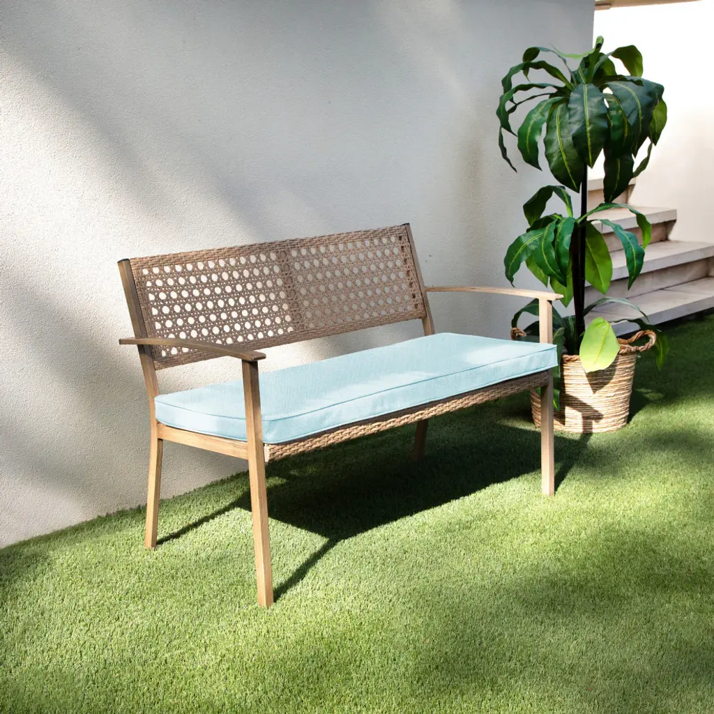 Start creating an outdoor ambiance you can appreaciate with the help of this adorable bench cushion! Featuring a gorgeous solid textured fabric in a rich, blue hue, this pillow set is sure to add comfort to your space and encourage you to enjoy the fresh air much more often! Crafted out of a performance material right here in North America, this bench cushion is built to withstand all of the sun, stains and weather that come your way. Sunbrella is founded on the belief that fabrics should be both beautiful and functional. We began in the 1960s with the challenge of creating an awning canvas with a substantially longer lifespan than cotton. Sunbrella has become widely adopted for shade structures, marine canvas and upholstery fabric for both outdoor and indoor applications.Our textiles are made with close attention to design detail, and engineered with robust performance characteristics that provide resistance to fading and degradation from sunlight and chemical exposure. The fabric is tactile yet durable, has industry-leading environmental characteristics, is easy to care for and offers long life - wherever it''s used.No Sunbrella manufacturing facility in the world sends waste to landfills. A result of our focus on efficiency, this monumental achievement allows Sunbrella to lead by example, putting sustainability into practice every day across the globe. Our unique coloring process not only makes Sunbrella fabrics fade-resistant, it also conserves more water than conventional dyeing processes. At Sunbrella we believe it''s important to preserve the environment around our facilities. We work to conserve the plant and animal life that is native to the area and encourage our employees to plant gardens designed to provide fresh food and nourish local wildlife.We stand behind our fabrics with a guarantee that''s the best in the industry: a 5-year limited warranty for upholstery. This warranty protects the original purchaser of Sunbrella fabric. This warranty protects against Sunbrella fabric becoming unserviceable due to color or strength loss from normal usage and exposure conditions, including sunlight, mildew and atmospheric chemicals.• Ideal for casual indoor and outdoor use• Includes one (1) bench cushion• Cushion cover can be removed for easy cleaning• Available in a variety of sizes and colors to ensure that you find the perfect match for your furniture• Cushion only. Furniture not included.• • Made in North America•