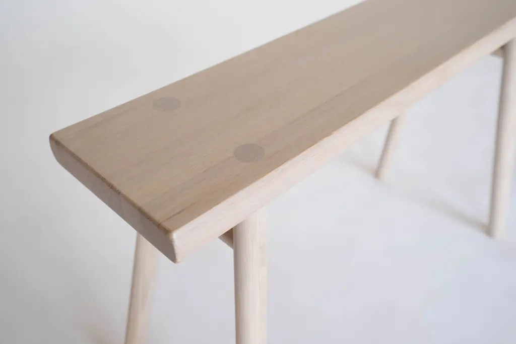 We designed the Wing stand at a size that allows the piece to serve as both a small bench and a stand, making it useful as additional dining room seating, a plant stand, or a non-traditional clothing rack. The stand uses our house-made tenna oil, which is hand-rubbed. Please note that we make each piece by hand, and every tree is different, so you’ll see slight variations in color and pattern. These aren’t machine made, and we use solid wood, not veneer or engineered wood!