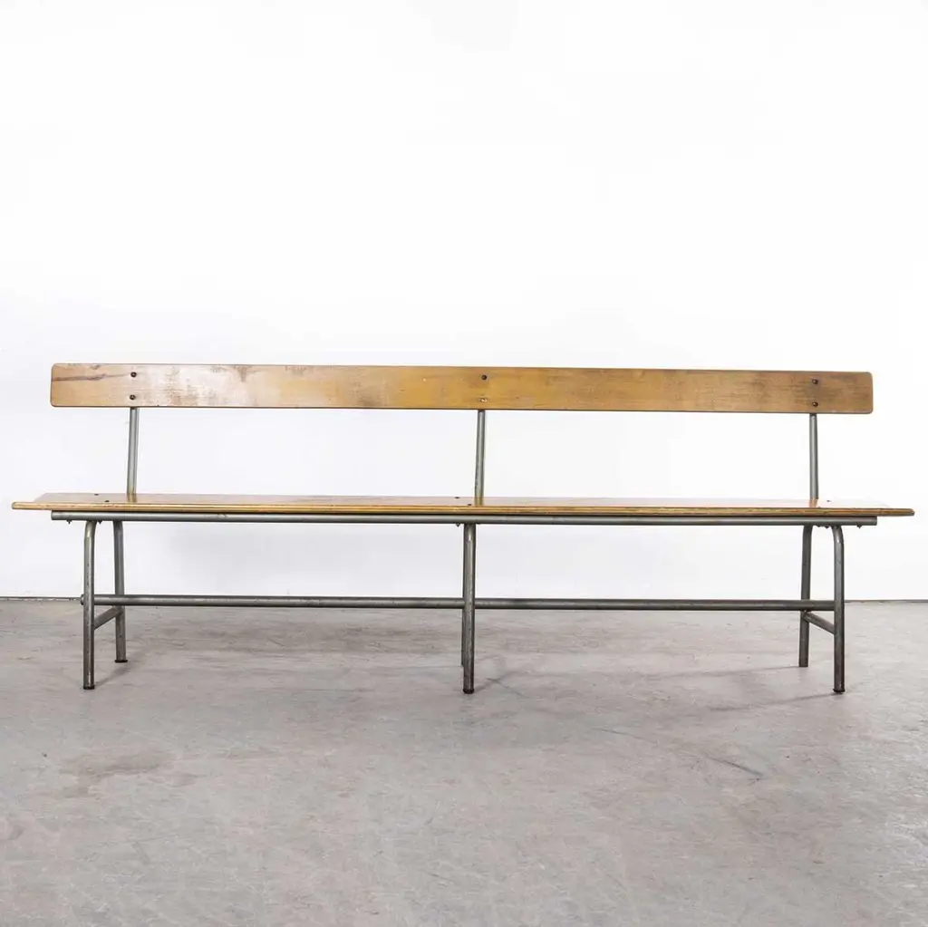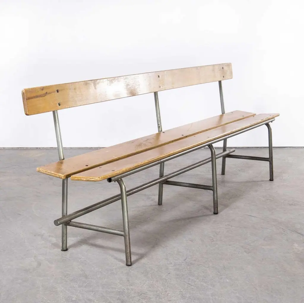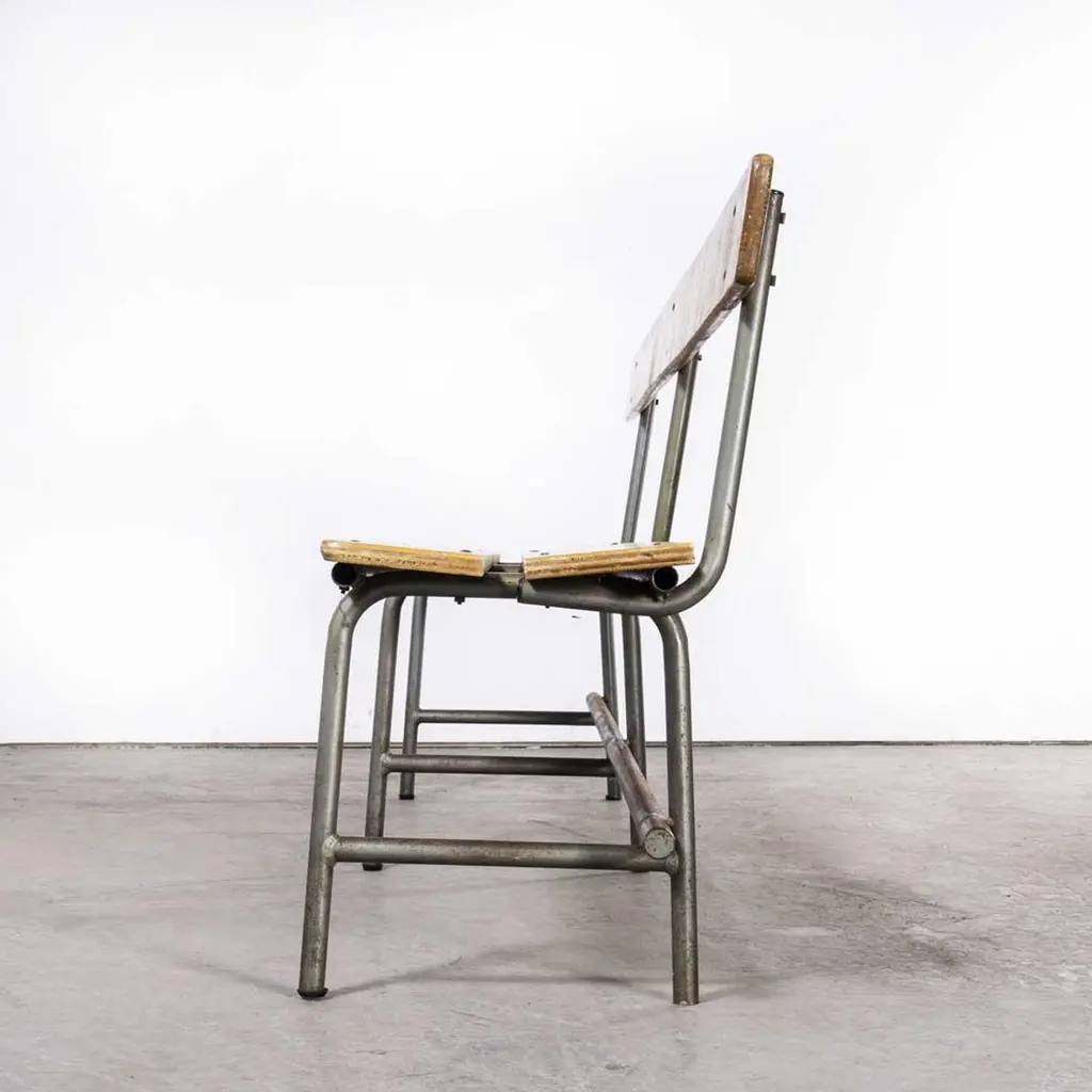 1960’s Original French Mullca school bench with back1960’s Original French Mullca school bench with back. Mullca, one of our favourite makers, in 1947 Robert Muller and Gaston Cavaillon created the company that went on to develop arguably the most famous French school chair. Sadly the company no longer exists but vintage chairs and benches can still be found, beautifully made with a strong tubular frame with birch seats and back inserts. We have seen a lot of Mullca Benches but never with backs so when we heard that a big batch was available we snapped them up. Ours date from the late 1960’s and are in exceptional condition. Sturdy tubular frames with beech seat and back slats they are perfect in halls or as general seating. We service and check each bench before it leaves our workshop and we deliver vintage of excellent quality. Seat Height 45 cm.Workshop reportOur workshop team inspect every product and carry out any needed repairs to ensure that everything leaves us serviced and maintained ready for many more years of life. All of our vintage products show the rich beauty and history of their life with the knocks and bumps of many years of use and we try to minimise restoration to keep every piece as original as possible.