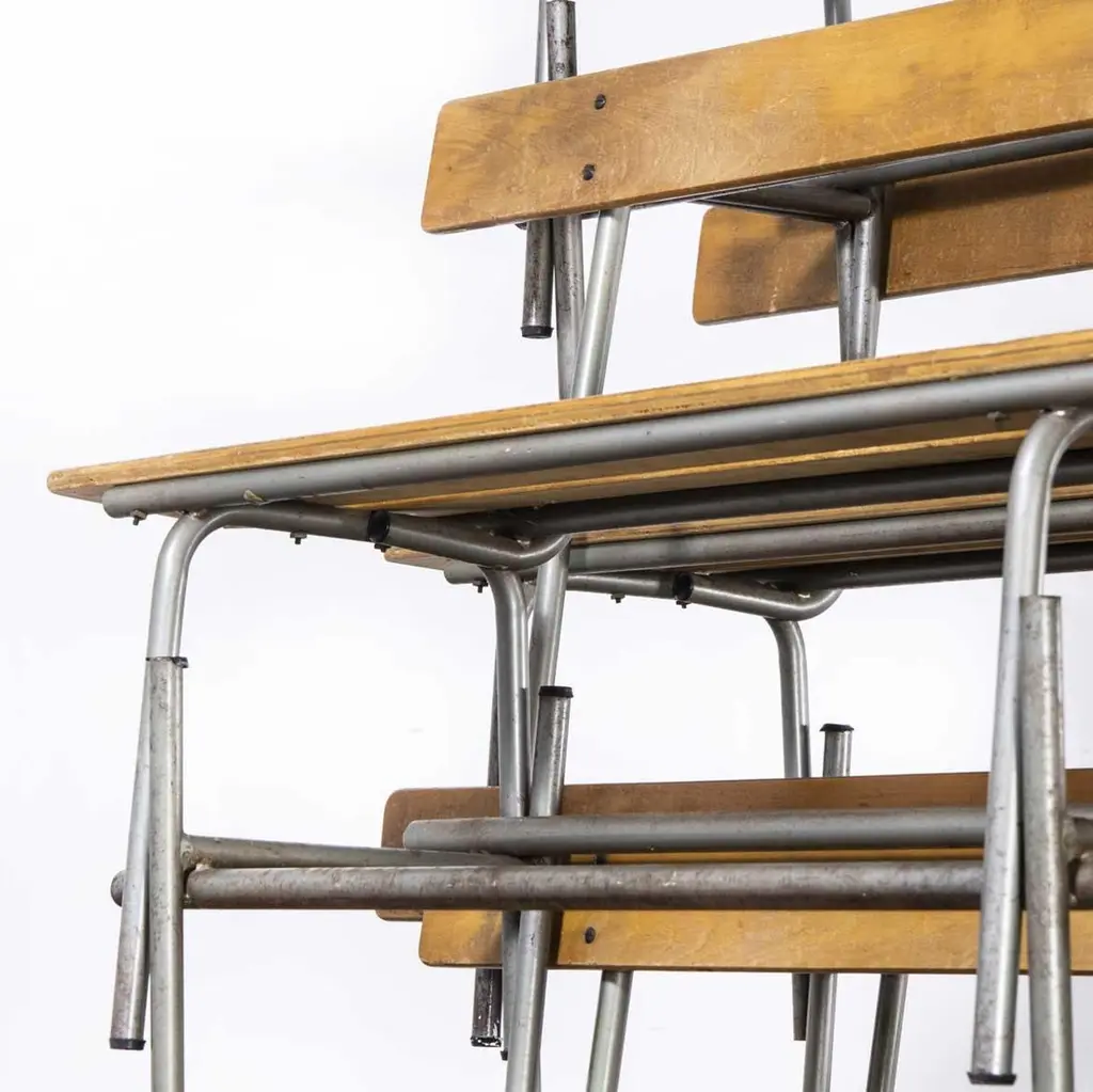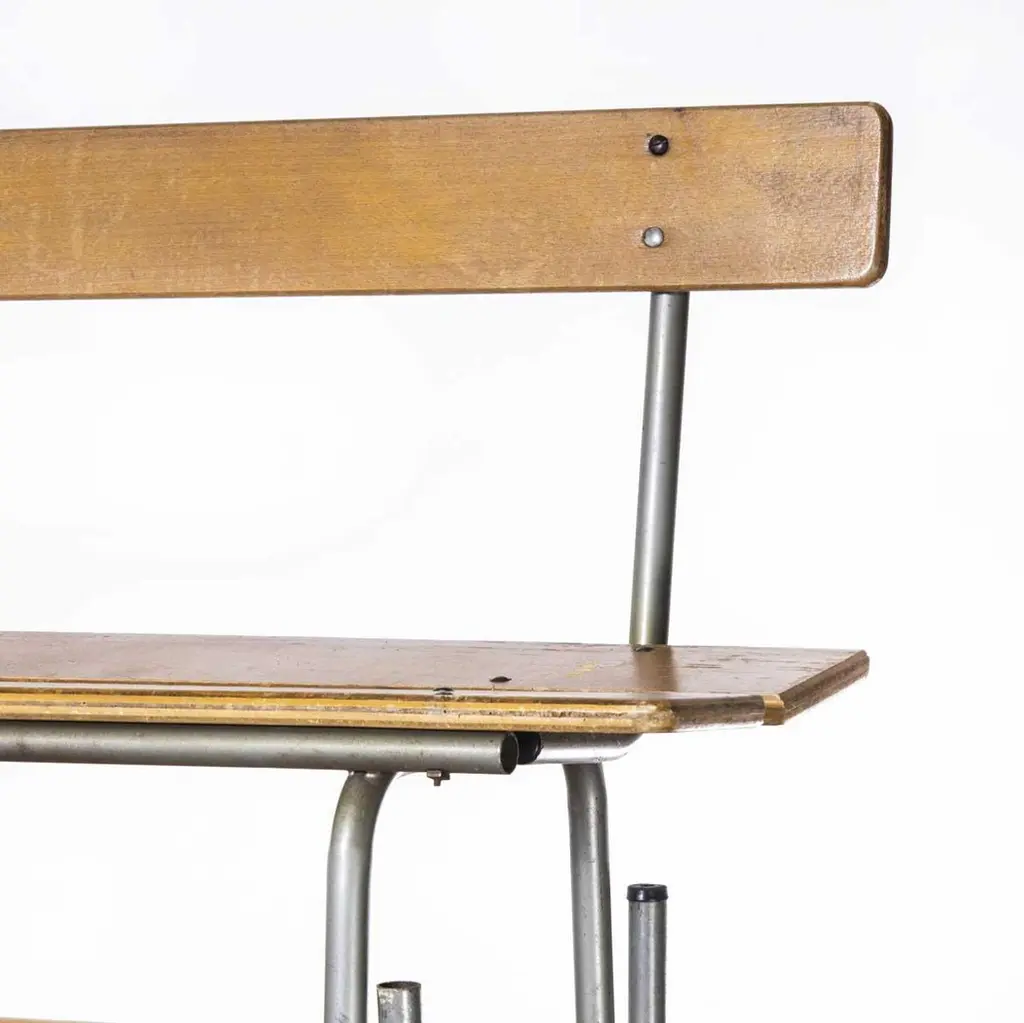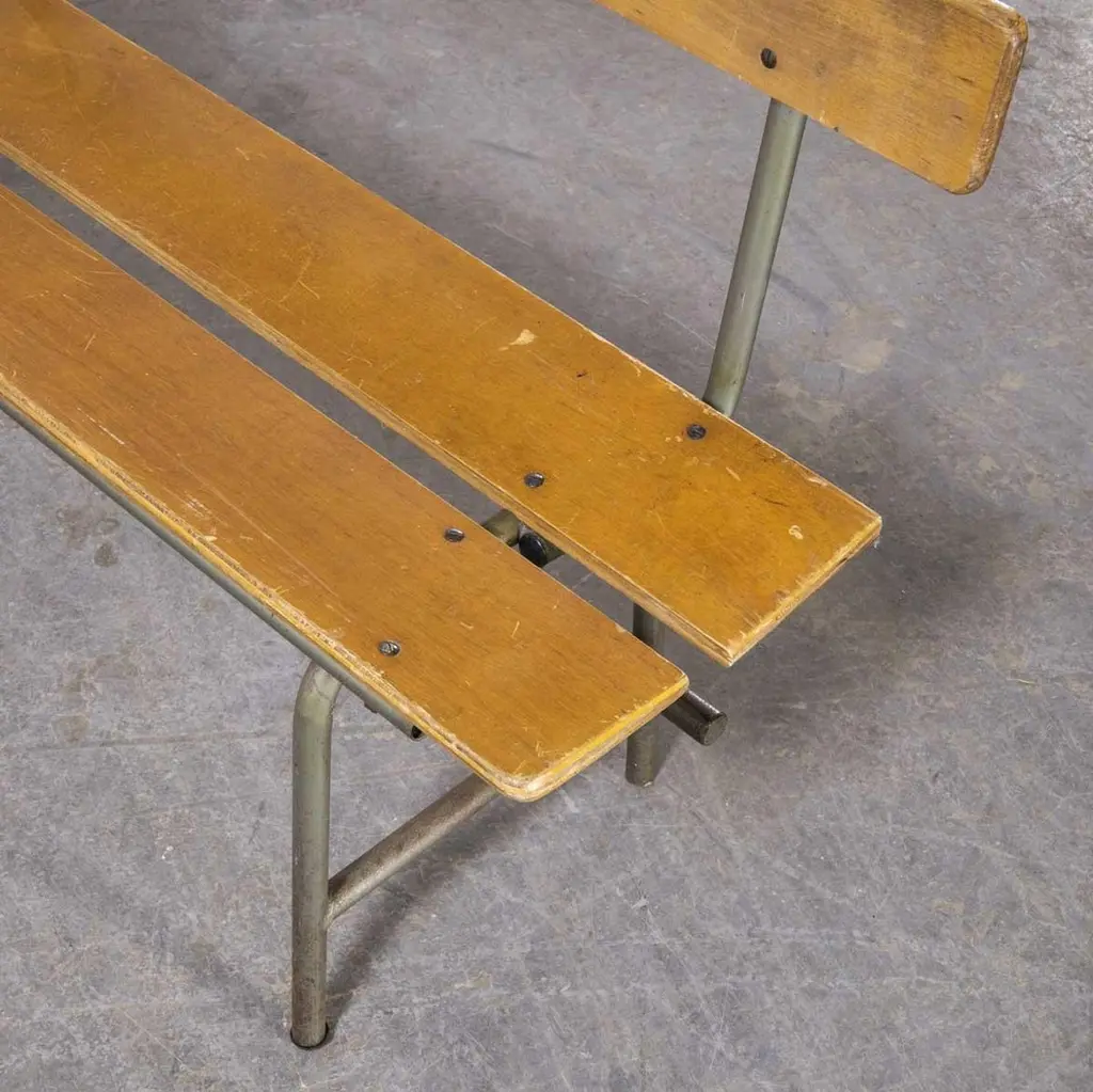 1960’s Original French Mullca school bench with back1960’s Original French Mullca school bench with back. Mullca, one of our favourite makers, in 1947 Robert Muller and Gaston Cavaillon created the company that went on to develop arguably the most famous French school chair. Sadly the company no longer exists but vintage chairs and benches can still be found, beautifully made with a strong tubular frame with birch seats and back inserts. We have seen a lot of Mullca Benches but never with backs so when we heard that a big batch was available we snapped them up. Ours date from the late 1960’s and are in exceptional condition. Sturdy tubular frames with beech seat and back slats they are perfect in halls or as general seating. We service and check each bench before it leaves our workshop and we deliver vintage of excellent quality. Seat Height 45 cm.Workshop reportOur workshop team inspect every product and carry out any needed repairs to ensure that everything leaves us serviced and maintained ready for many more years of life. All of our vintage products show the rich beauty and history of their life with the knocks and bumps of many years of use and we try to minimise restoration to keep every piece as original as possible.