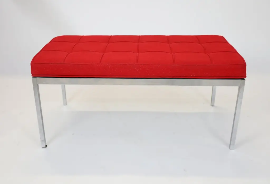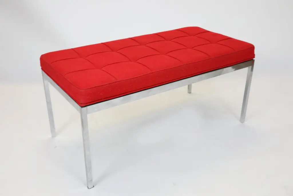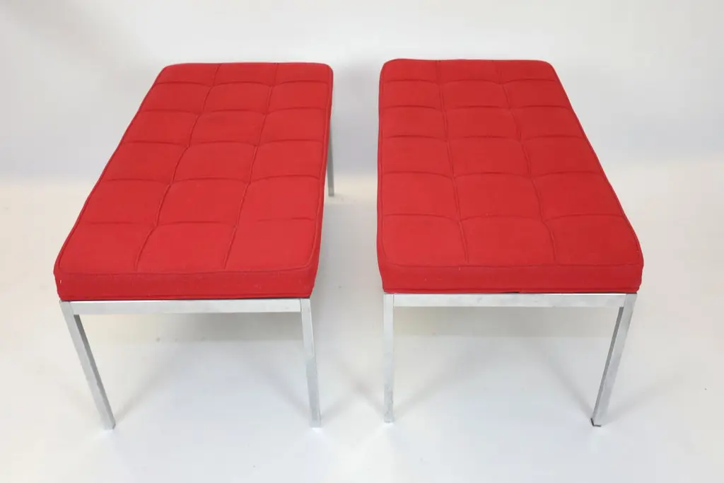 2 Florence Knoll benchesOriginal red upholstery.LabeledSold individually, price is for 1 bench.