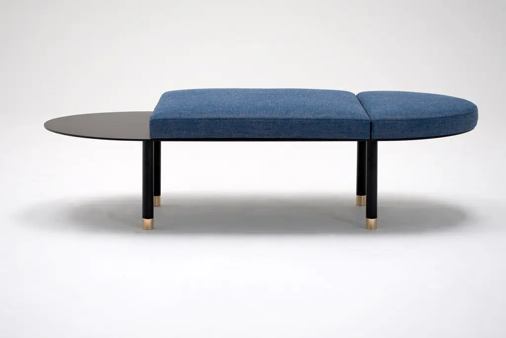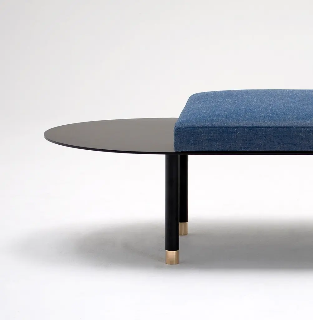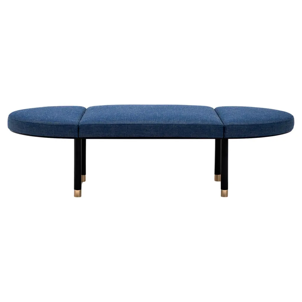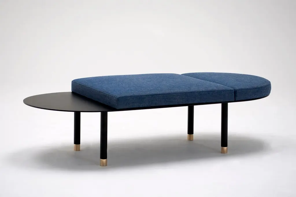 2 Piece Pill Bench by Phase DesignDimensions: D 149.9 x W 71.1 x H 38.1 cm. Materials: Powder-coated steel, brass and upholstery.Fabric price not included.Powder coated steel base with solid brass tips. Powder coat finishes available in flat black, flat white, or flat gray. Upholstery may be sourced in Customer Own Material (COM), Customer Own Leather (COL), or in Phase Design's suggested fabrics and leathers. Prices may vary. Please contact us.The Pill is a fresh take on the classic bench. Three separate upholstered pieces attach to a solid steel base with solid brass feet. The bench can be ordered with two upholstered pieces, with exposed metal becoming a side table.Autodidact award-winning designer Reza Feiz has always been drawn to the strength in simplicity. Lured to Southern California by its inventive, creative spirit, he quickly discovered his true calling among the vast community of creators and artisans whose skills and ingenuity expertly transform imagination into reality.Inspired by Los Angeles’ iconic landscape and the compelling beauty of the places and spaces he encountered, he envisioned furniture, lighting and tabletop accessories, fabricating them from contemporary materials with the help of a tightly knit coterie of craftspeople.The resulting restrained yet revolutionary pieces have garnered enthusiasm from an international audience.He’s been lauded as “An American designer who influences world design”, a “Style Pioneer” and “One of a group of select young designers who represent the leading edge of discovery in design.” Architectural Digest’s Mayer Rus noted that his “wide-ranging collections make a strong case for the enduring appeal of restrained modern design.” Surface Magazine raved that he “imbues his work with a 21st-century edge. His astute sense of restraint keeps the designs relevant in a constantly evolving industry, without needing to subscribe to trends.”“Reza Feiz imbues his work with a 21st-century edge. His astute sense of restraint keeps the designs relevant in a constantly evolving industry, without needing to subscribe to trends.”
