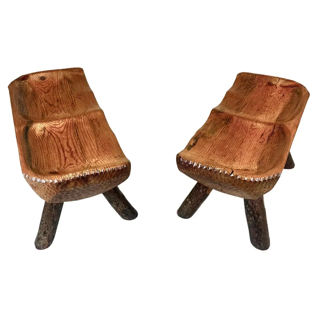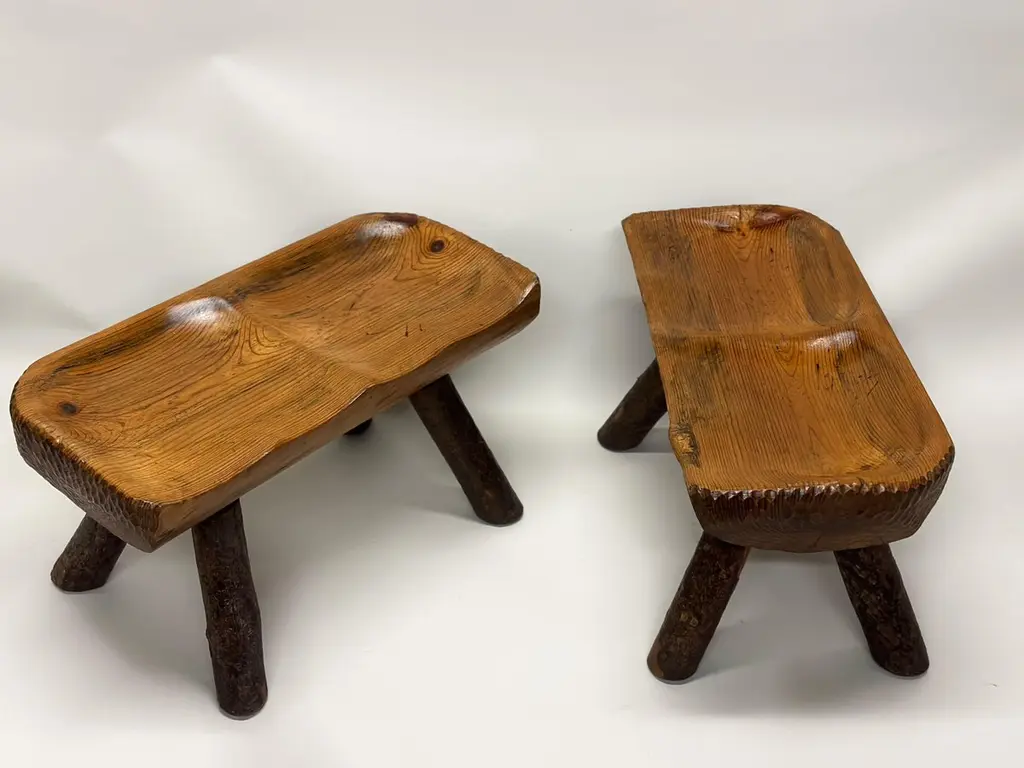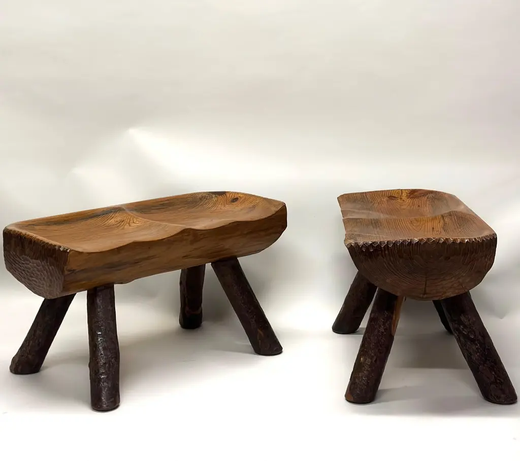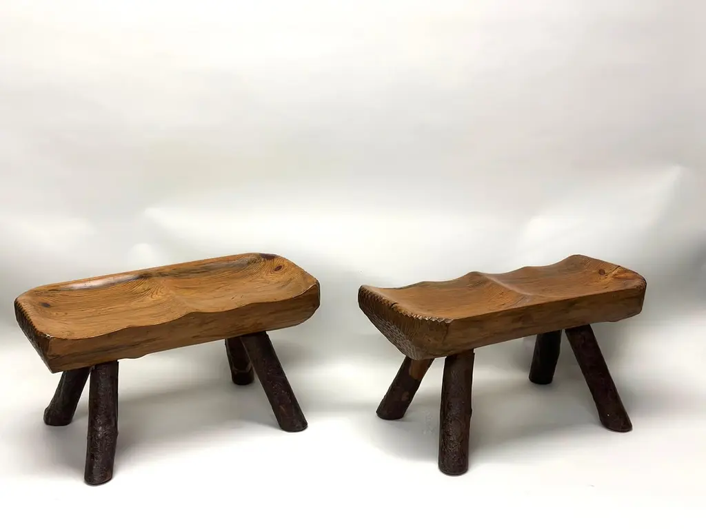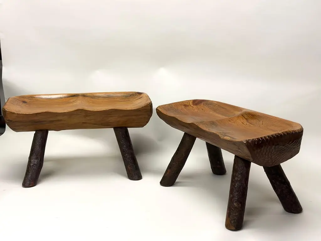 2 Rare Italian Modern Craftsman Alpine Benches In Hand Carved Cypress