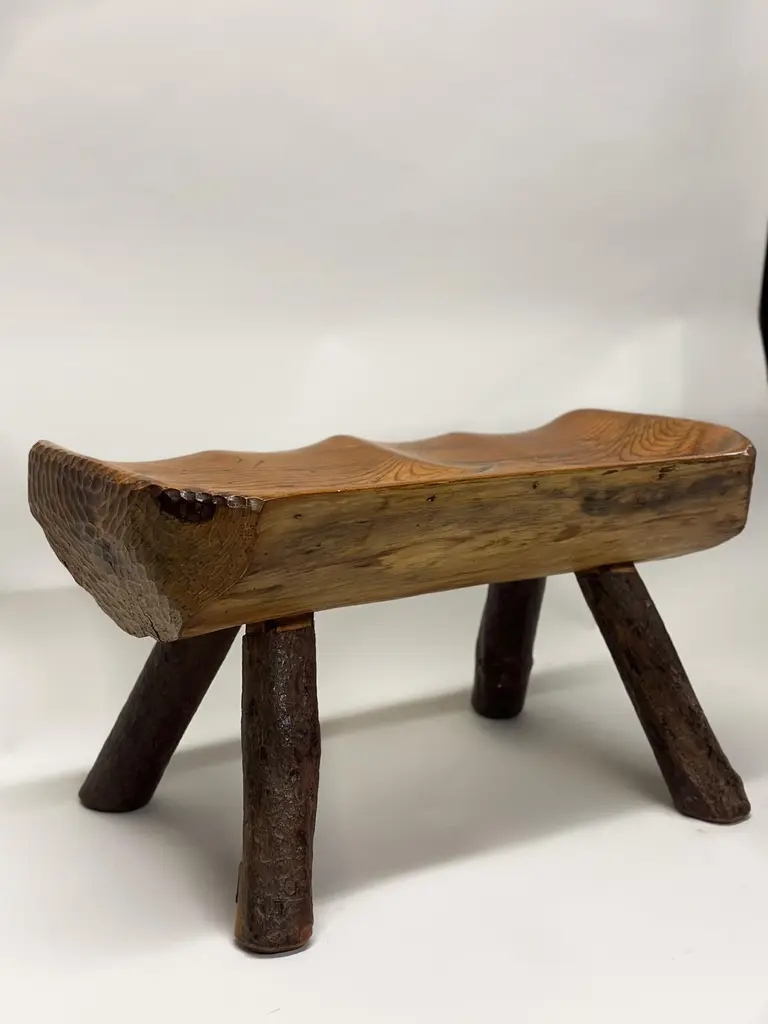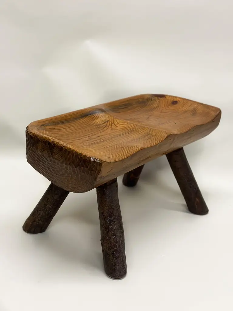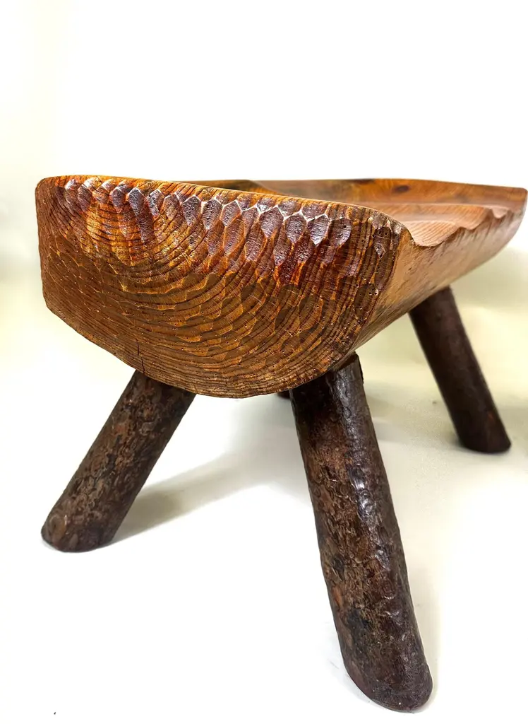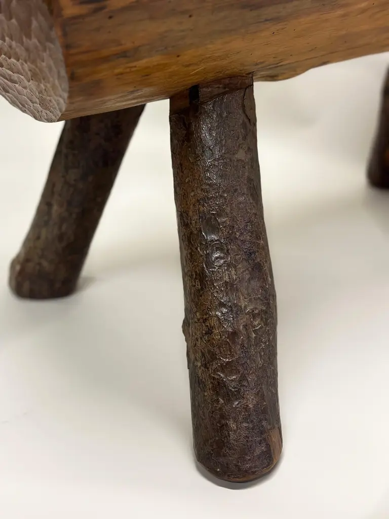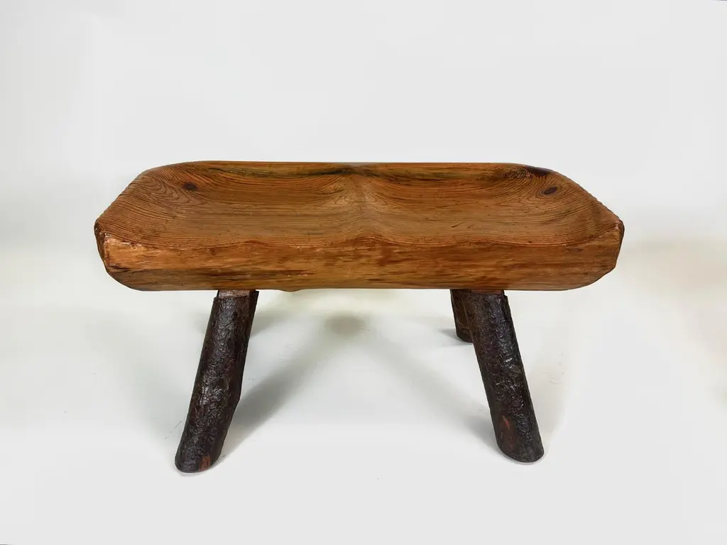 2 Rare, Hand Carved Cypress, Italian Alpine Benches circa 1950. The pieces convey the Mid-Century Modern Craftsman aesthetic with its emphasis on hand made pieces, using honest materials and reflecting sober, modern sensibilities in conjunction with the influence of nature. They are original pieces, hand carved from blocks of wood with hand carved wood seats and hand chiseled around the apron to provide details of the sensuous wood. They are practical and functional, timeless works of sculpture to be enjoyed by generation after generation. Priced and Sold as Individual Pieces.