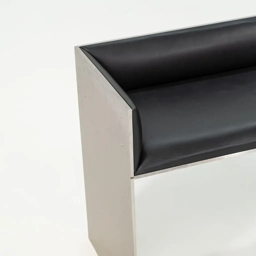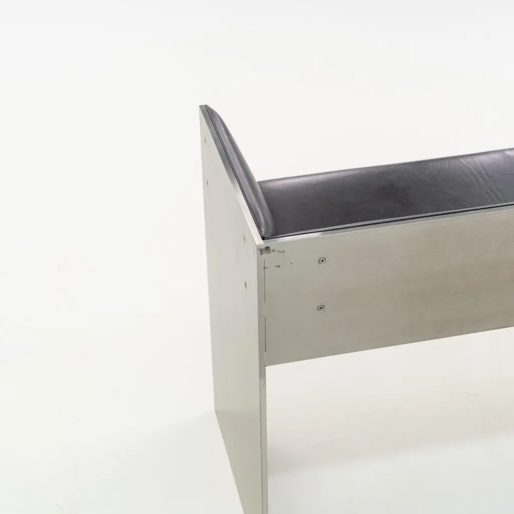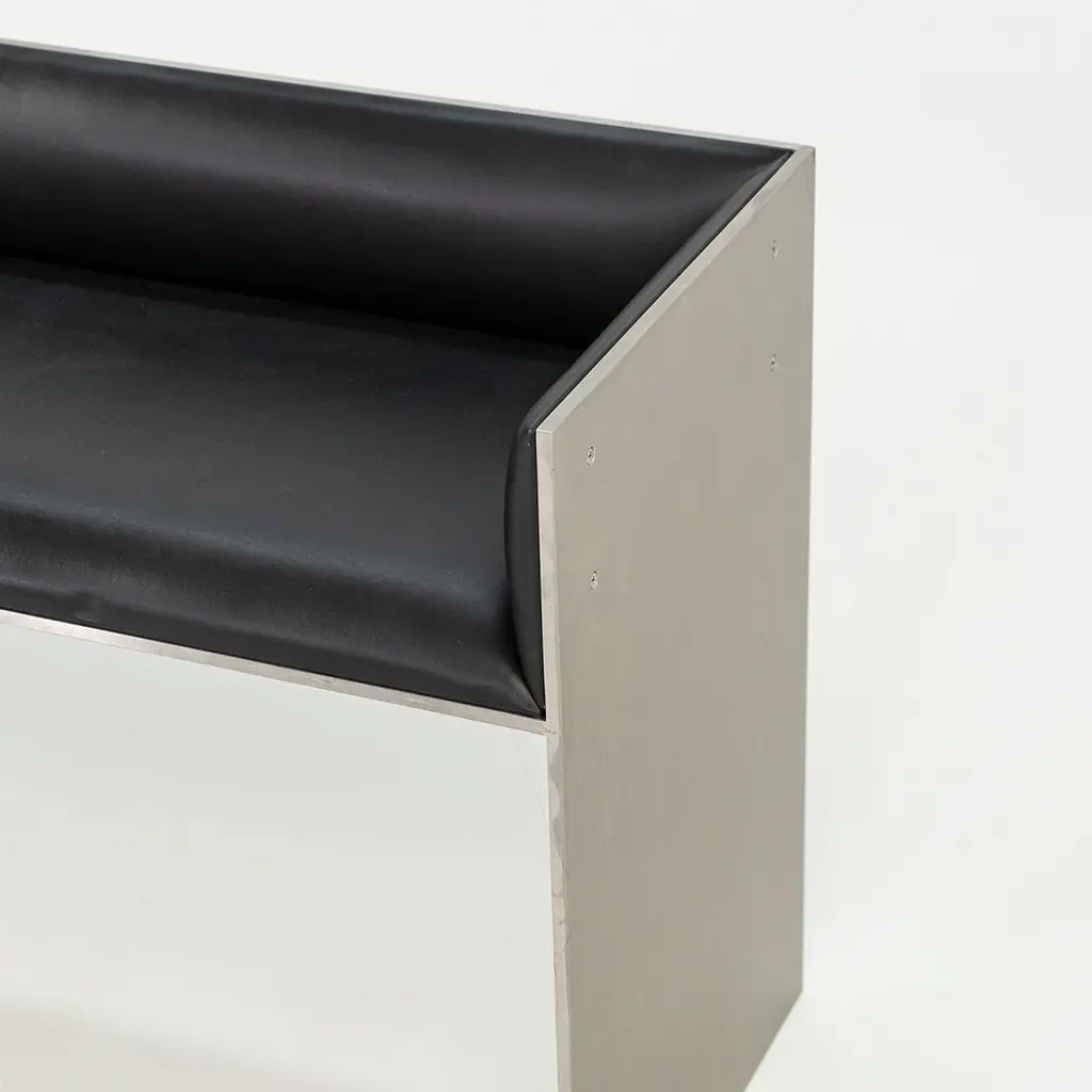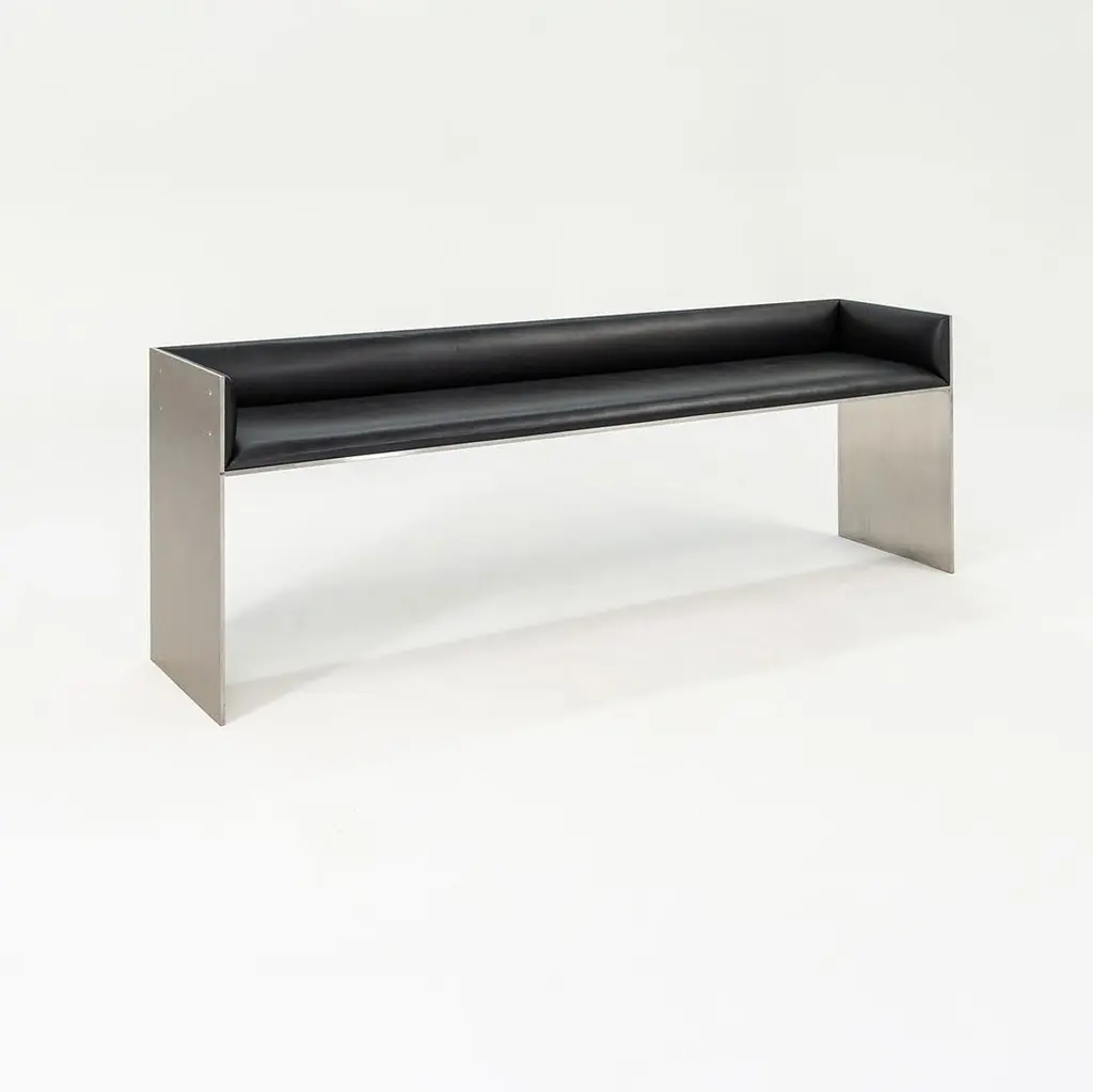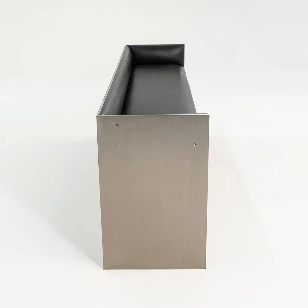 2016 Custom Brushed Stainless Steel Bench W/ Leather Upholstery, 2X Available