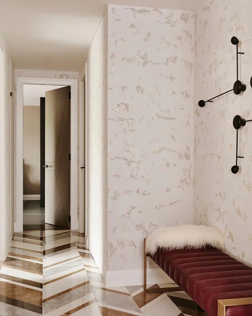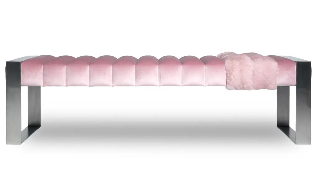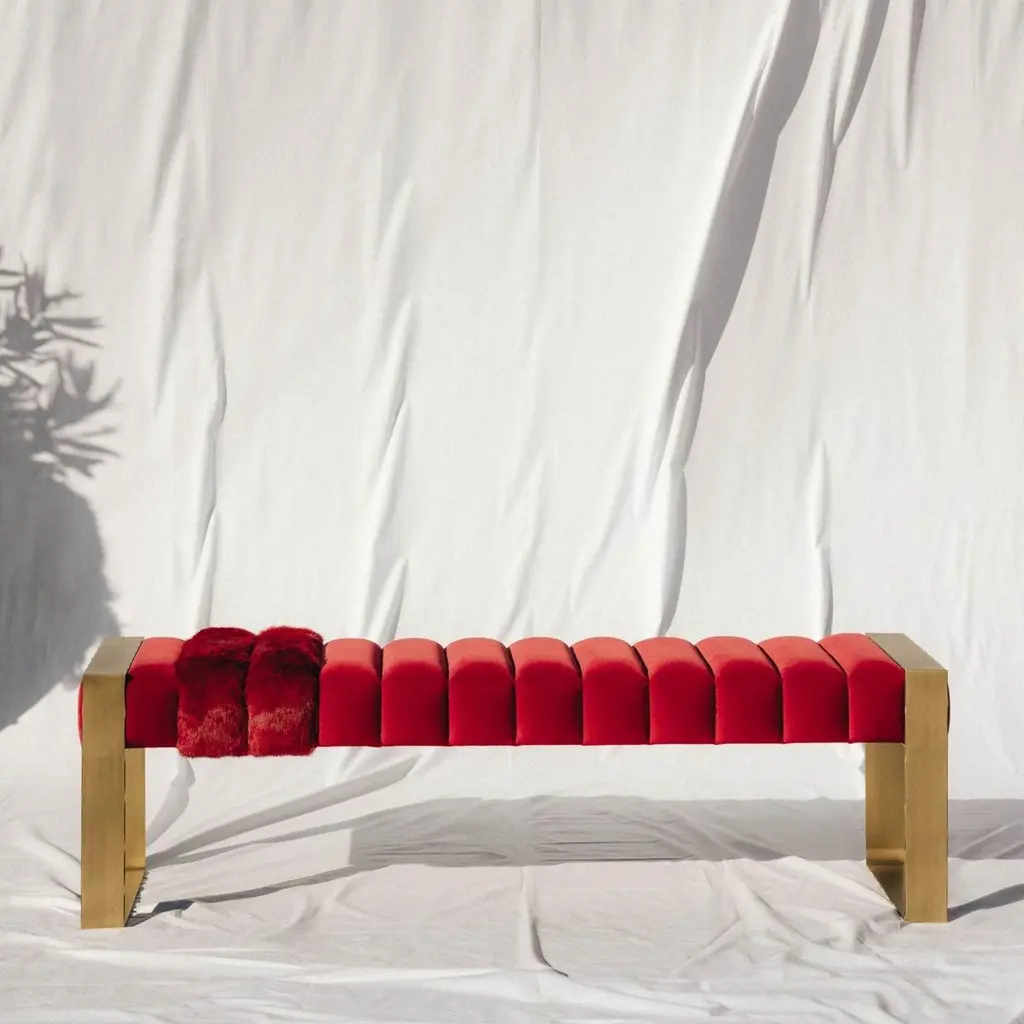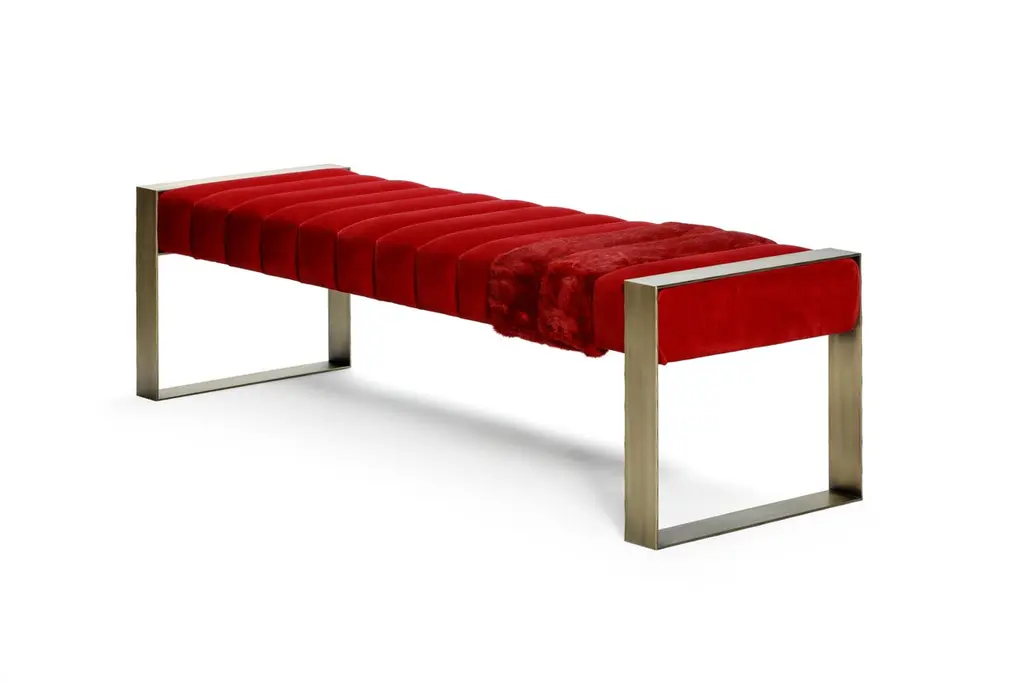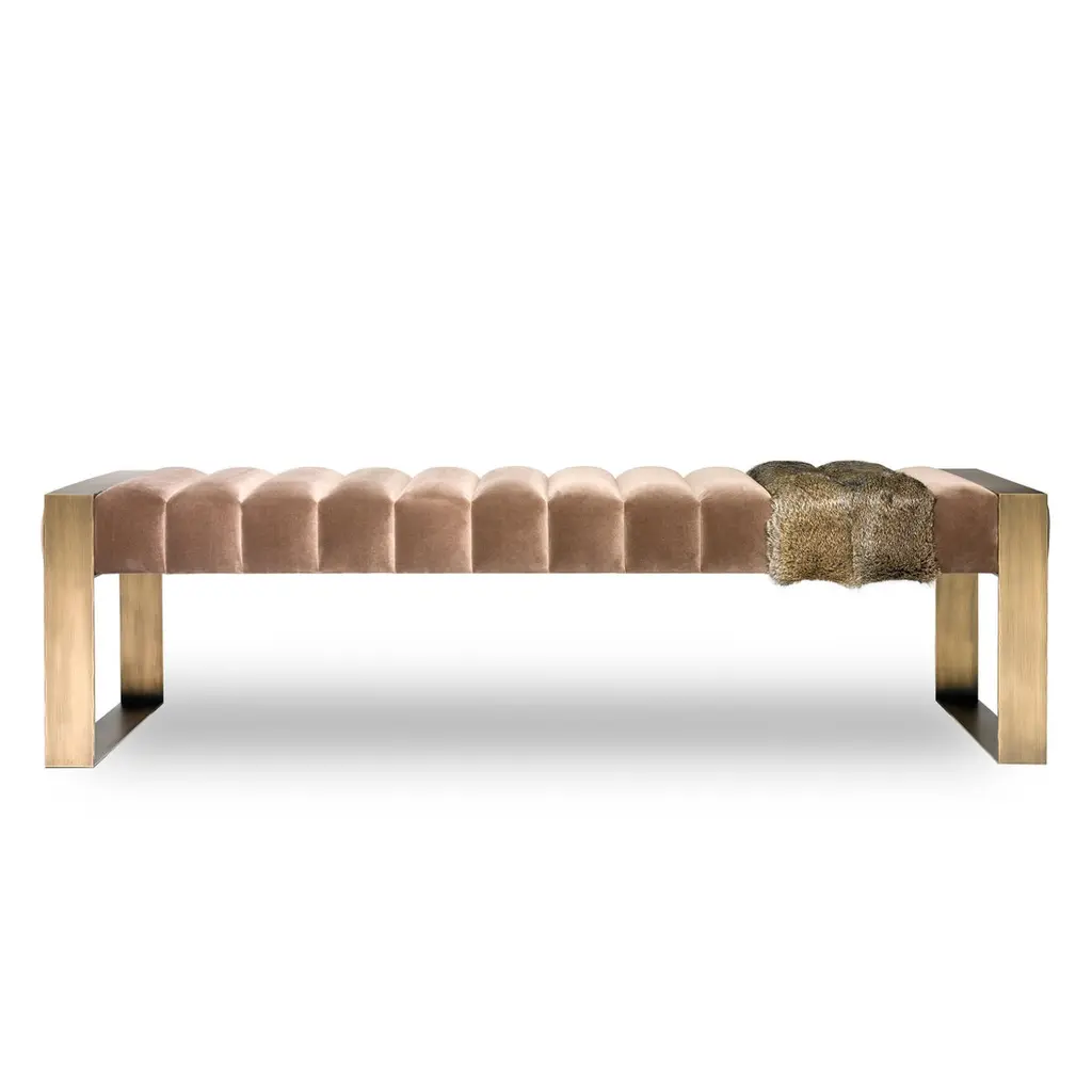 21st Century Dawn Bench, Velvet Upholstery And Brass Legs, By Duistt