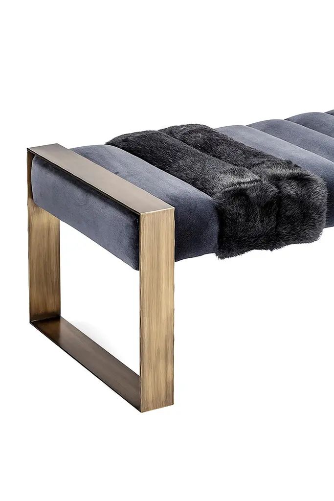Dawn Bench, Velvet Upholstery and Brass Legs, Handcrafted in Portugal by DuisttThe DAWN bench is a statement design piece. The name dawn is inspired by the pieces clear horizontal lines and stability that the stripes and open structure provides us. DAWN bench is a contemporary upholstered piece with an interesting twist of two fur strips. It evokes strength with the use of straight lines whilst the fur elements add a touch of femininity and luxury. This is an incredibly versatile piece with a variety of finishes, sizes and colors.Shown in brass legs and velvelt upholstery. Custom sizes and materials available upon request, production lead time 8 to 10 weeks. Designed and manufactured by Duistt in Portugal - Europe. Duistt arose in 2014 from the will and desire to produce high-end furniture pieces with special attention to quality and timeless design. Blending ancient knowledge and techniques with contemporary aesthetics, Duistt’ design approach elevates the user experience, guaranteeing them delightful pieces crafted with art that are absolutely unique and can last generations.