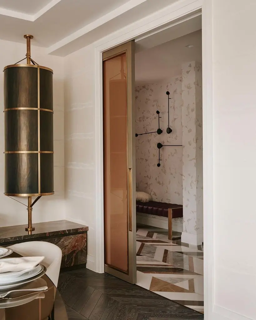 21st Century Dawn Bench, Velvet Upholstery And Brass Legs, By Duistt