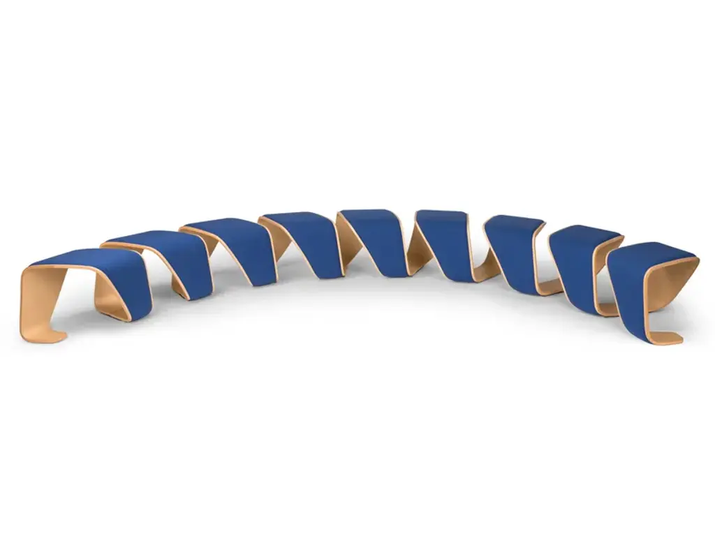 Inspired by the dynamic forms of biogenetics, the DNA modular bench consists of a single element of curved wood plywood, assembled specularly. The result is an appealing piece of furniture with a particular helix shape, each step of which corresponds to a seat suitably separated from the others. DNA is also available in a version upholstered in leather or fabric. Thanks to its adaptability and sturdy craftsmanship, DNA is the perfect addition for hospitality settings like lobbies, lounges and guestrooms. DNA is also available in the upholstered collection, in fabric or leather.