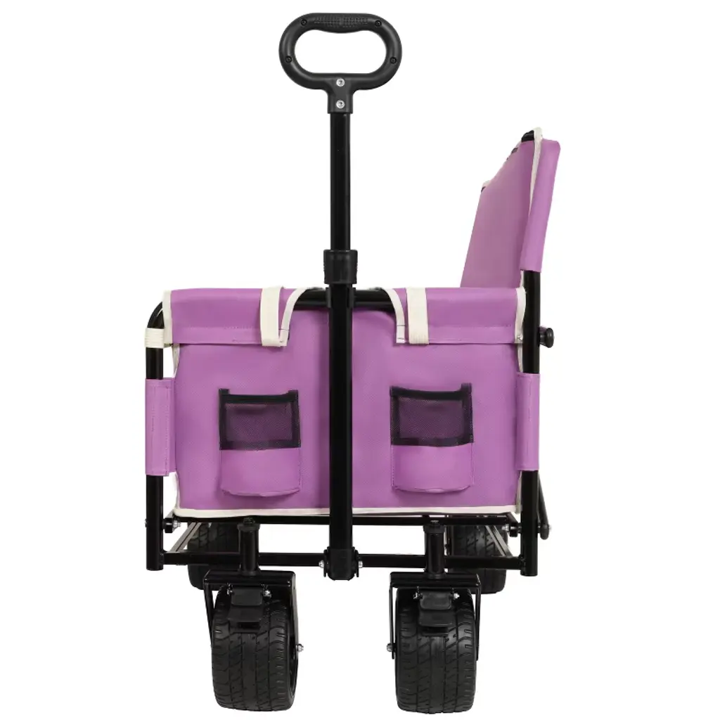 3-in-1 Convertible Folding Wagon Cart With Bench Seat & Storage - 500lbs Heavy-duty Utility Wagon, 180l Capacity All-terrain Wheels Purple