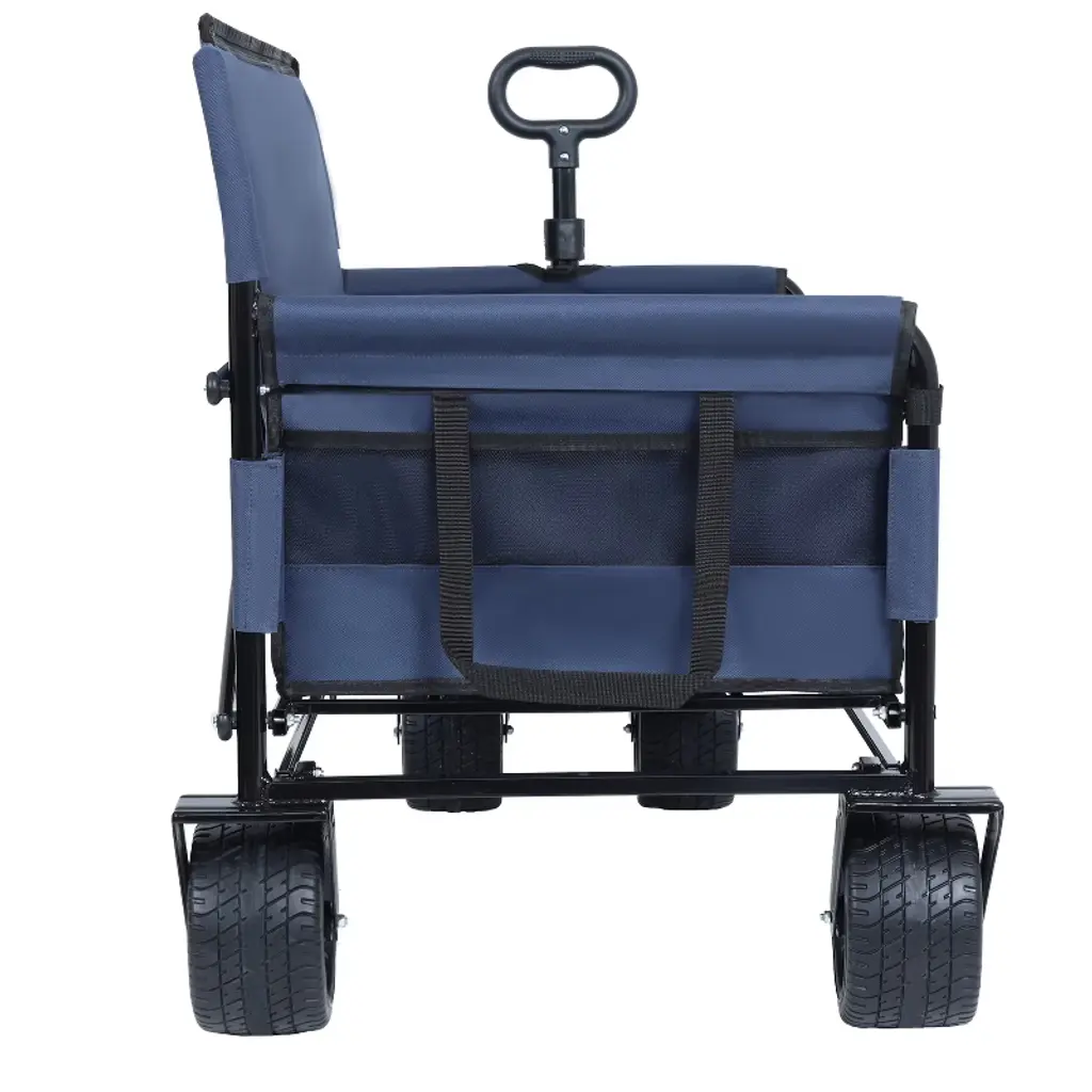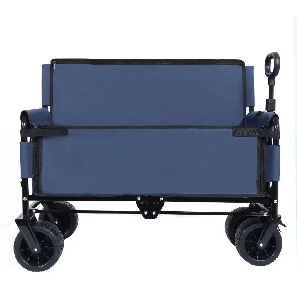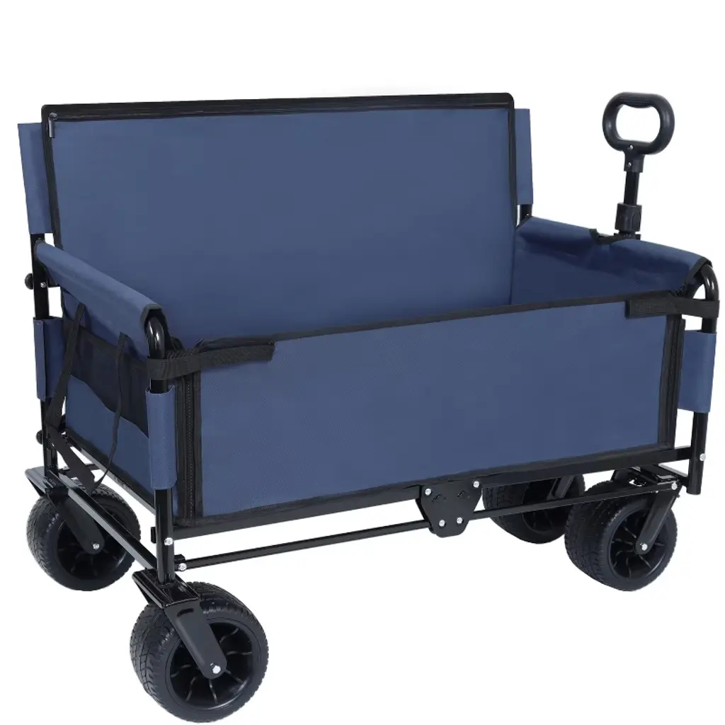 3-in-1 Convertible Folding Wagon Cart With Bench Seat & Storage - 500lbs Heavy-duty Utility Wagon Dark Blue