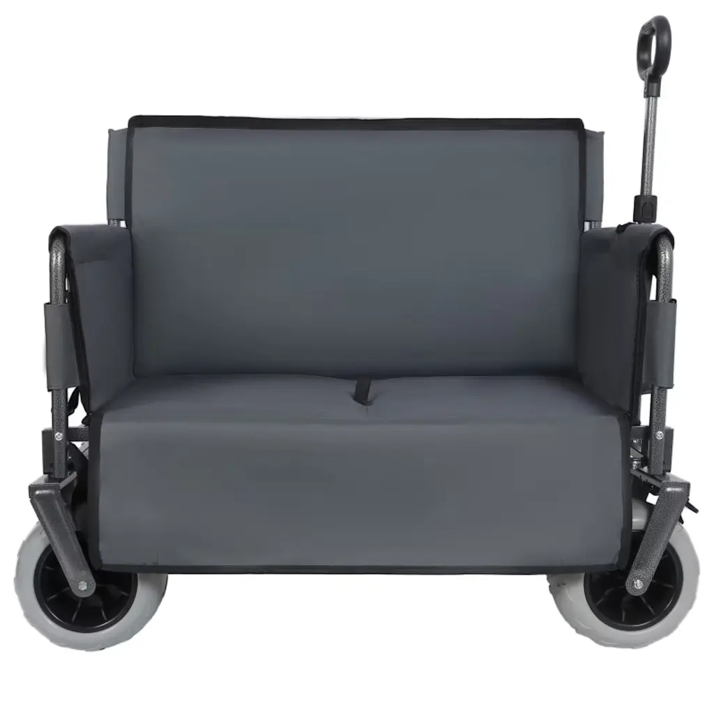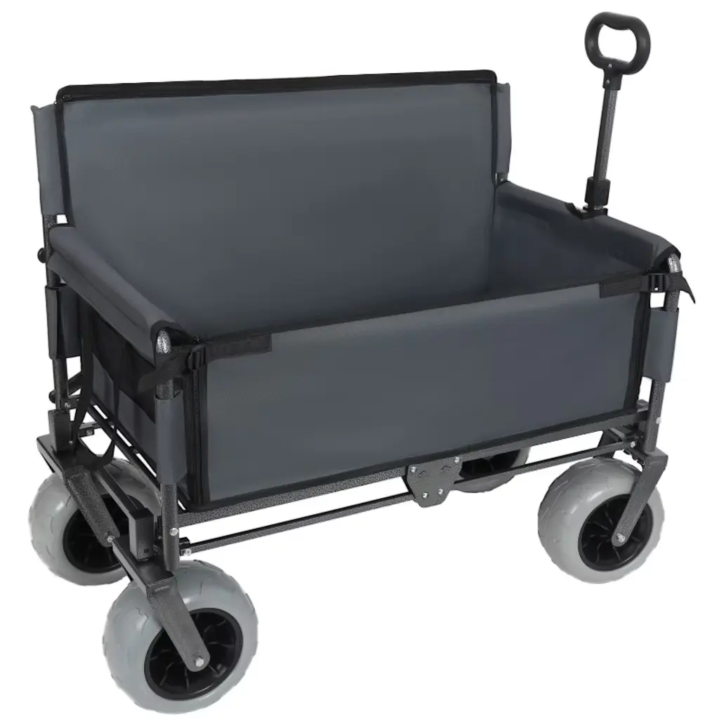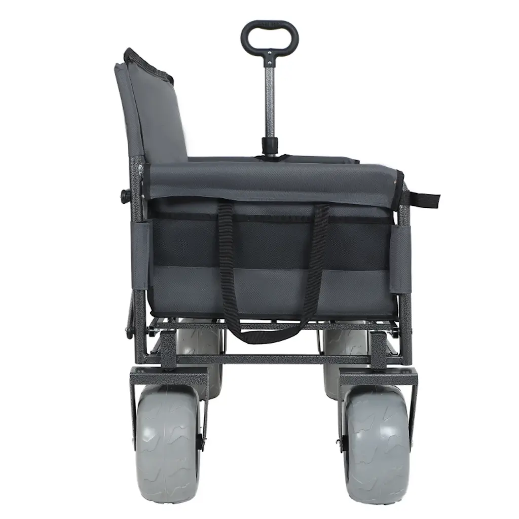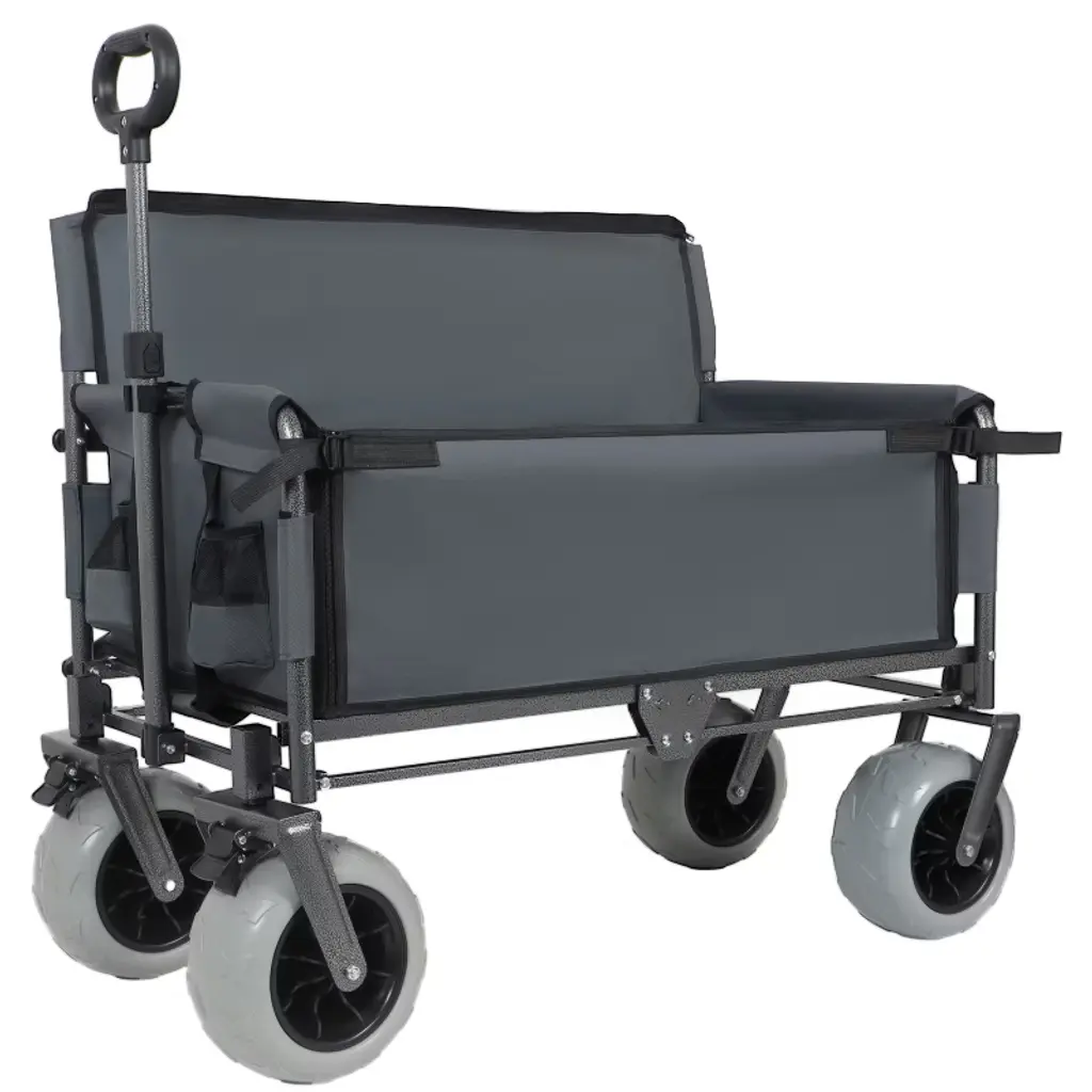 3-in-1 Folding Wagon with Bench Seat ¨C 500lbs Capacity, 9"x4" Beach Tires for Camping & Beach, gray
