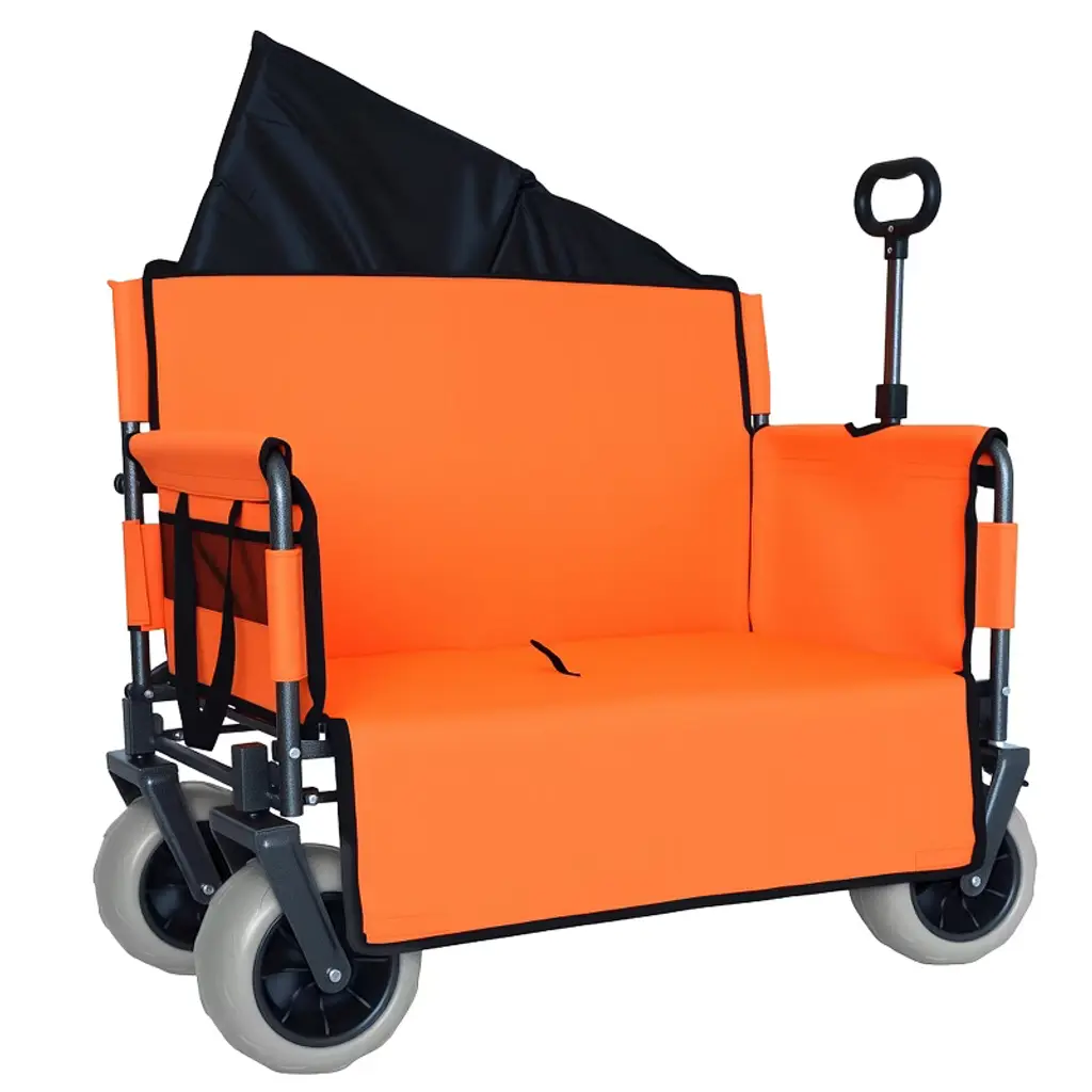 3-in-1 Folding Wagon with Bench Seat ¨C 500lbs Capacity, 9"x4" Beach Tires for Camping & Beach, orange