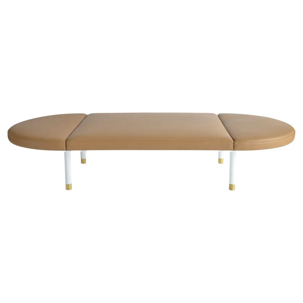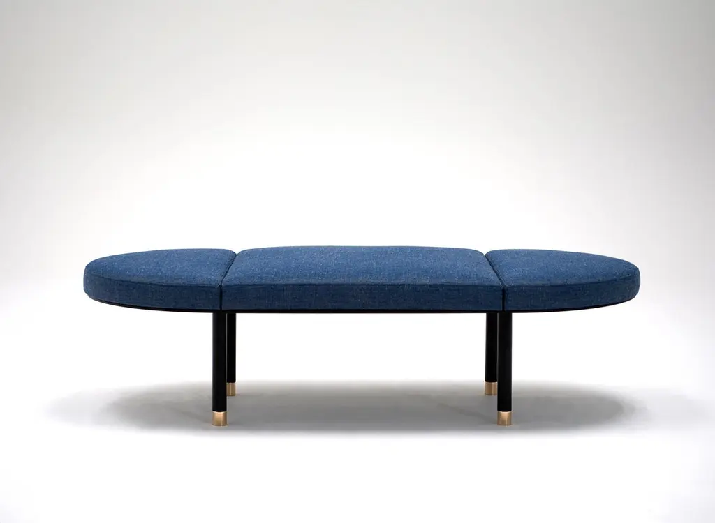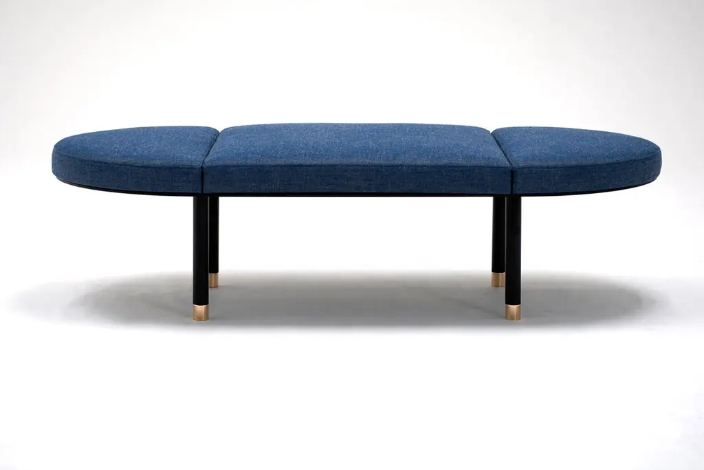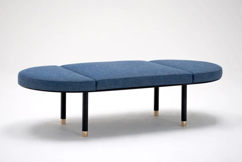 3 Piece Pill Bench by Phase DesignDimensions: D 149.9 x W 71.1 x H 38.1 cm. Materials: Powder-coated steel, brass and upholstery.Fabric price not included.Powder coated steel base with solid brass tips. Powder coat finishes available in flat black, flat white, or flat gray. Upholstery may be sourced in Customer Own Material (COM), Customer Own Leather (COL), or in Phase Design's suggested fabrics and leathers. Prices may vary. Please contact us.The Pill is a fresh take on the classic bench. Three separate upholstered pieces attach to a solid steel base with solid brass feet. The bench can be ordered with two upholstered pieces, with exposed metal becoming a side table.Autodidact award-winning designer Reza Feiz has always been drawn to the strength in simplicity. Lured to Southern California by its inventive, creative spirit, he quickly discovered his true calling among the vast community of creators and artisans whose skills and ingenuity expertly transform imagination into reality.Inspired by Los Angeles’ iconic landscape and the compelling beauty of the places and spaces he encountered, he envisioned furniture, lighting and tabletop accessories, fabricating them from contemporary materials with the help of a tightly knit coterie of craftspeople.The resulting restrained yet revolutionary pieces have garnered enthusiasm from an international audience.He’s been lauded as “An American designer who influences world design”, a “Style Pioneer” and “One of a group of select young designers who represent the leading edge of discovery in design.” Architectural Digest’s Mayer Rus noted that his “wide-ranging collections make a strong case for the enduring appeal of restrained modern design.” Surface Magazine raved that he “imbues his work with a 21st-century edge. His astute sense of restraint keeps the designs relevant in a constantly evolving industry, without needing to subscribe to trends.”“Reza Feiz imbues his work with a 21st-century edge. His astute sense of restraint keeps the designs relevant in a constantly evolving industry, without needing to subscribe to trends.”