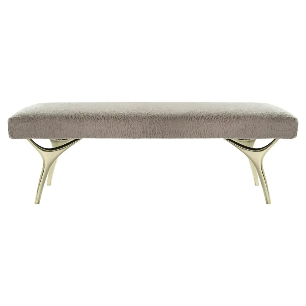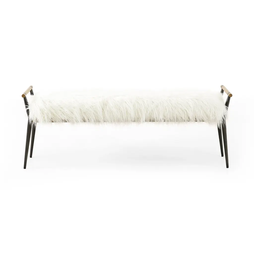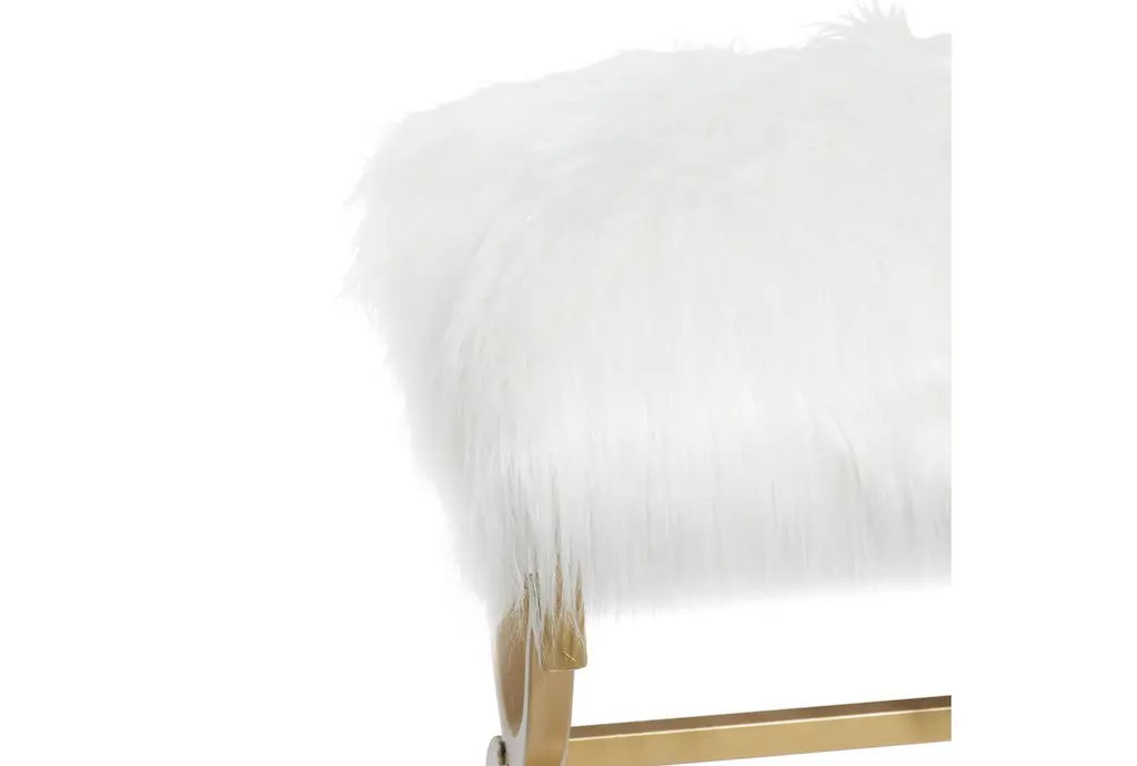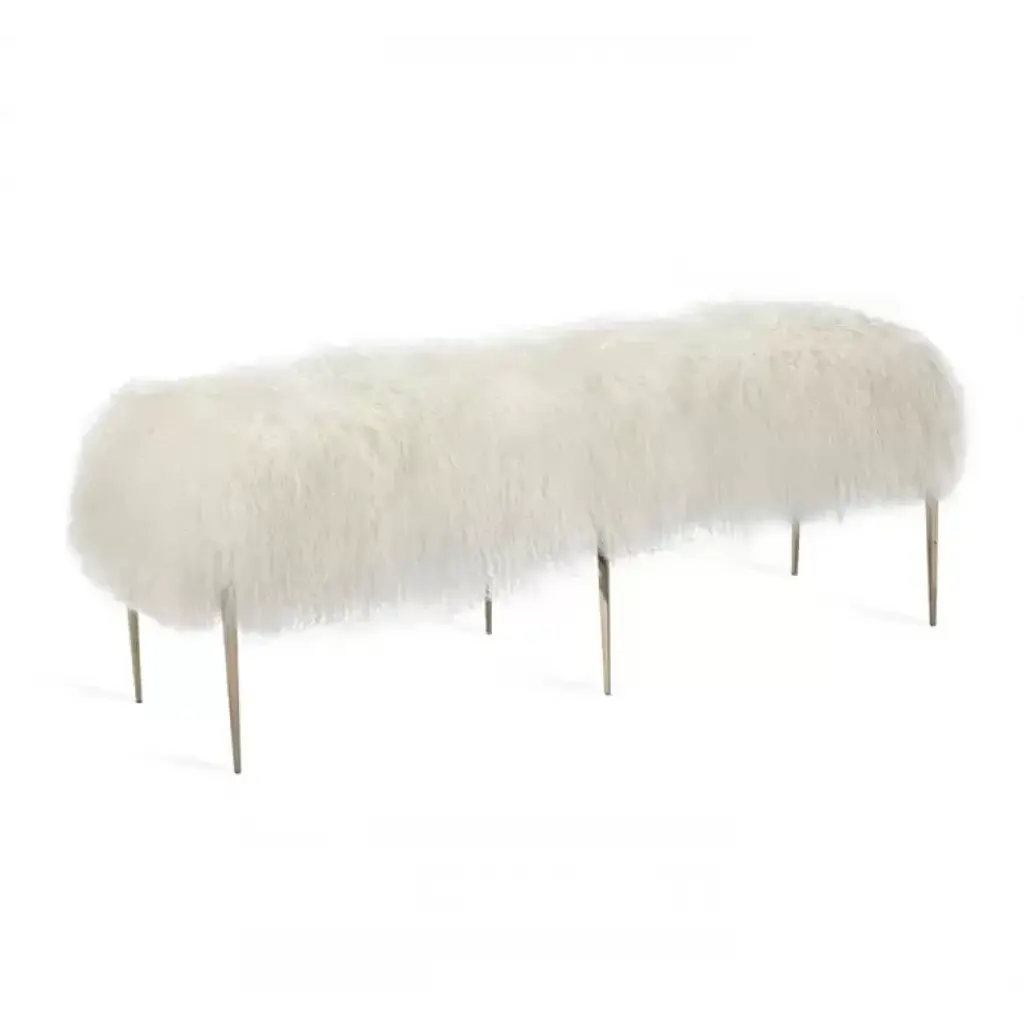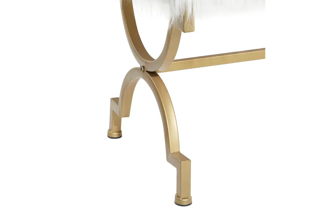 So take a load off and relax on this decorative bench. A small piece of furniture that make a big difference to give your home an instance refresh. Elegant faux fur bench carries a chic finish, making it an ideal piano chair and footstool in the living room or home office. Designed with felt or rubber stoppers at the base that prevent scratching furniture and table tops, as well as sliding around. This item ships in 1 carton. Suitable for indoor use only. Some assembly required. Maximum weight limit is 400 lbs. Can accommodate 2 people. This is a single gold colored entryway bench. Contemporary style.