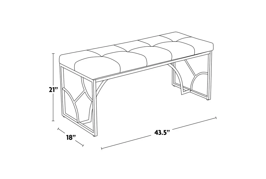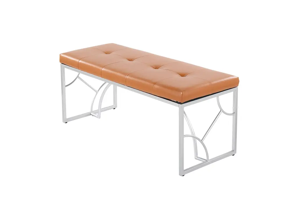 44" Camel Faux Leather + Silver Metal Base | Tufted | Entryway