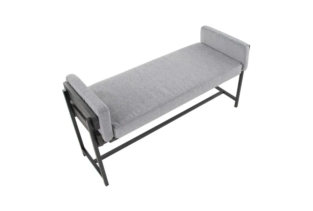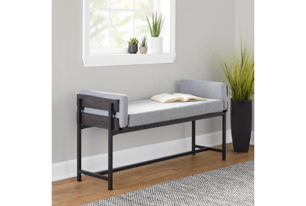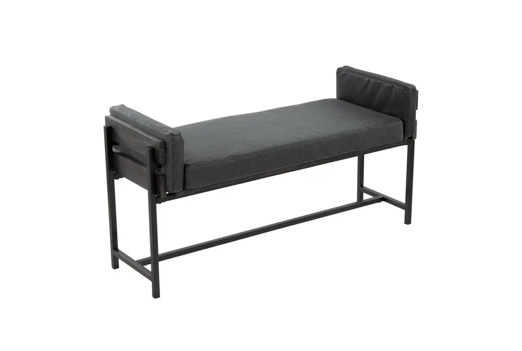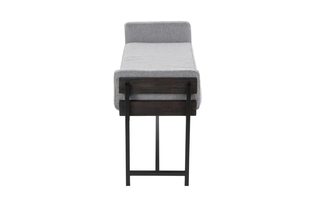 45" Farmhouse Bench With Grey Upholstered Seating Black Frame + Black Metal Legs | Entryway