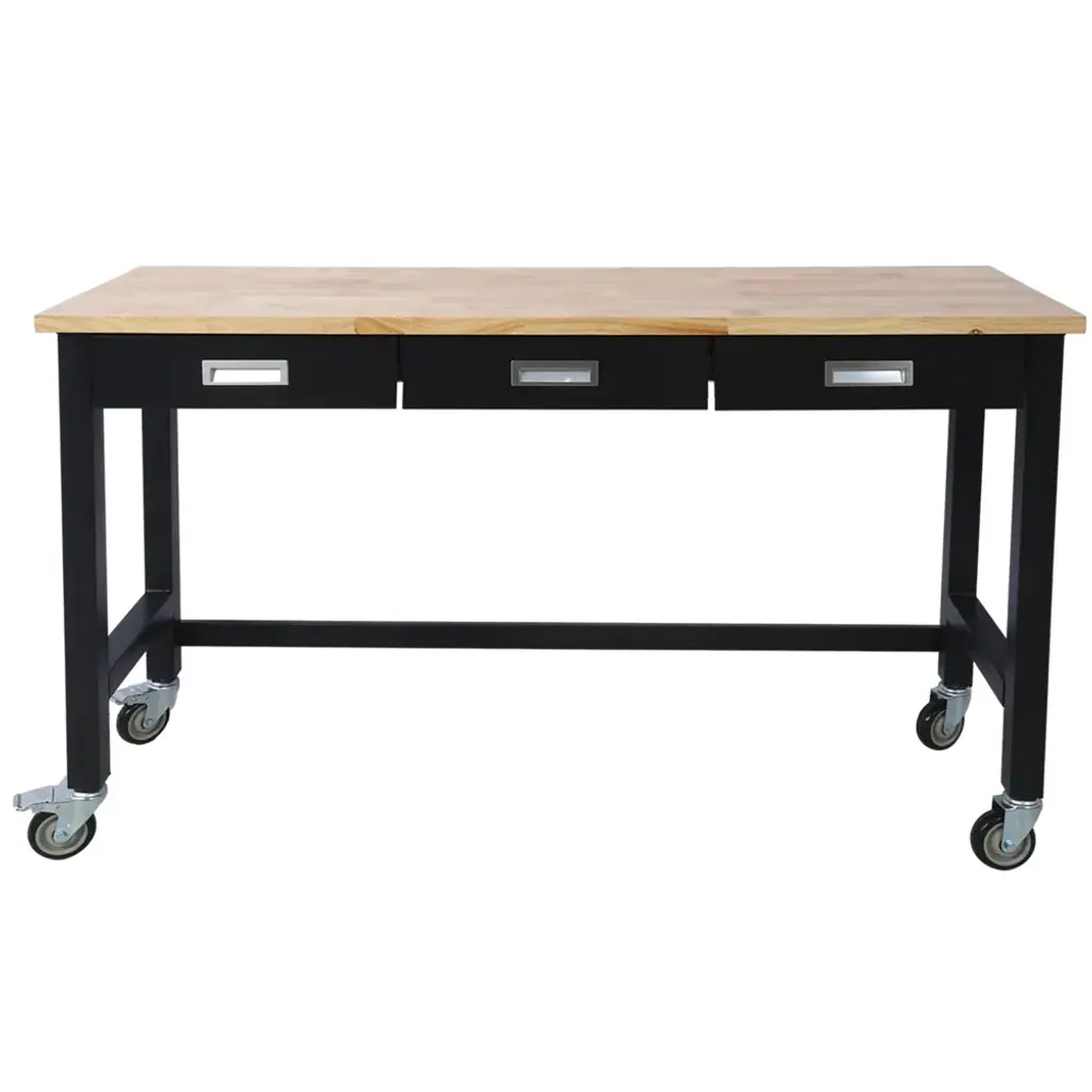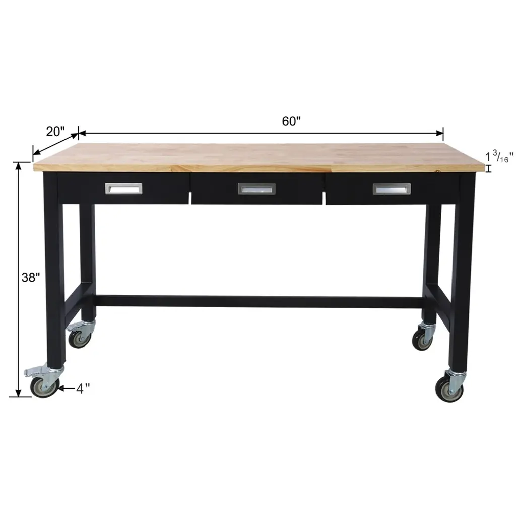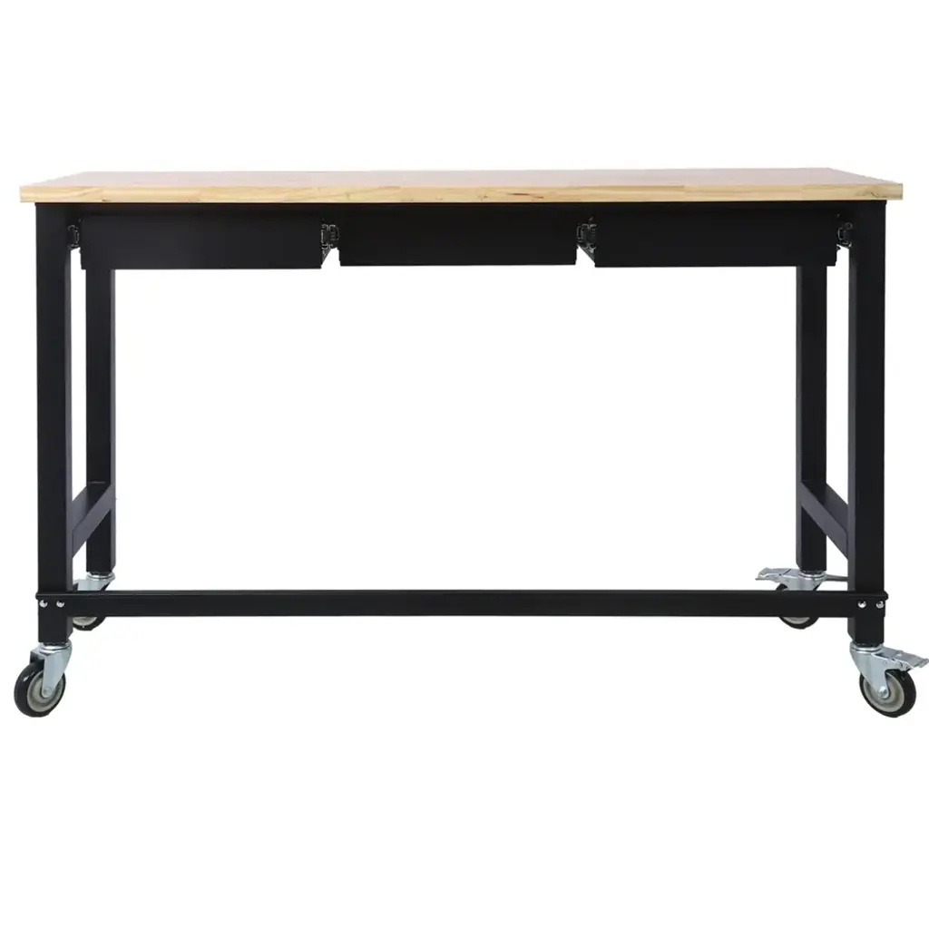 46" Wood Workbench With Drawer Storage And Wheels - Black