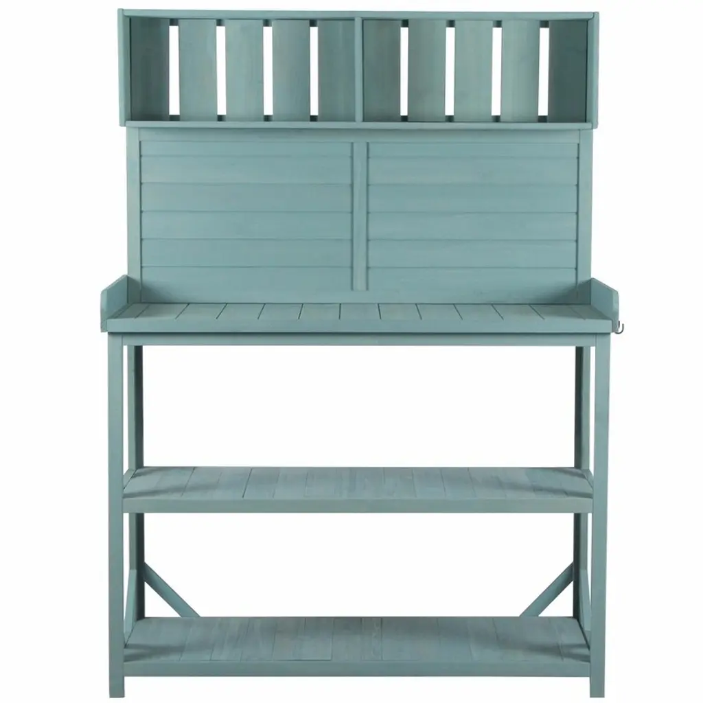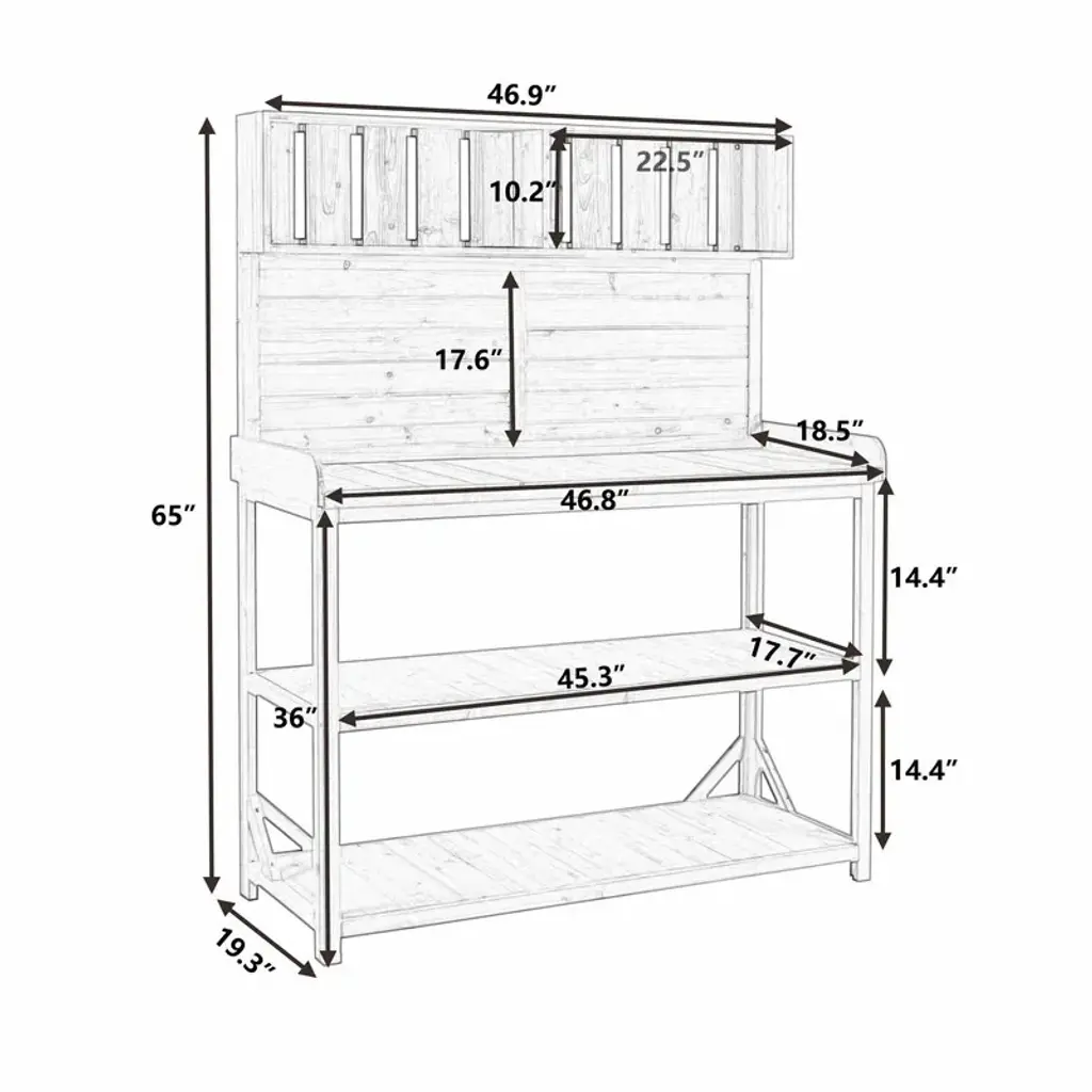 65" Large Wooden Farmhouse Rustic Outdoor Potting Bench - Clear