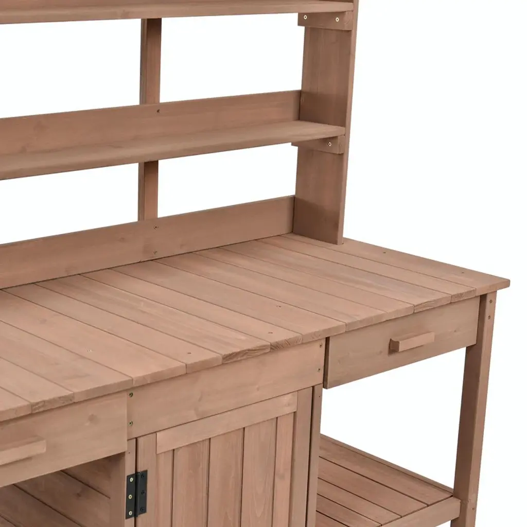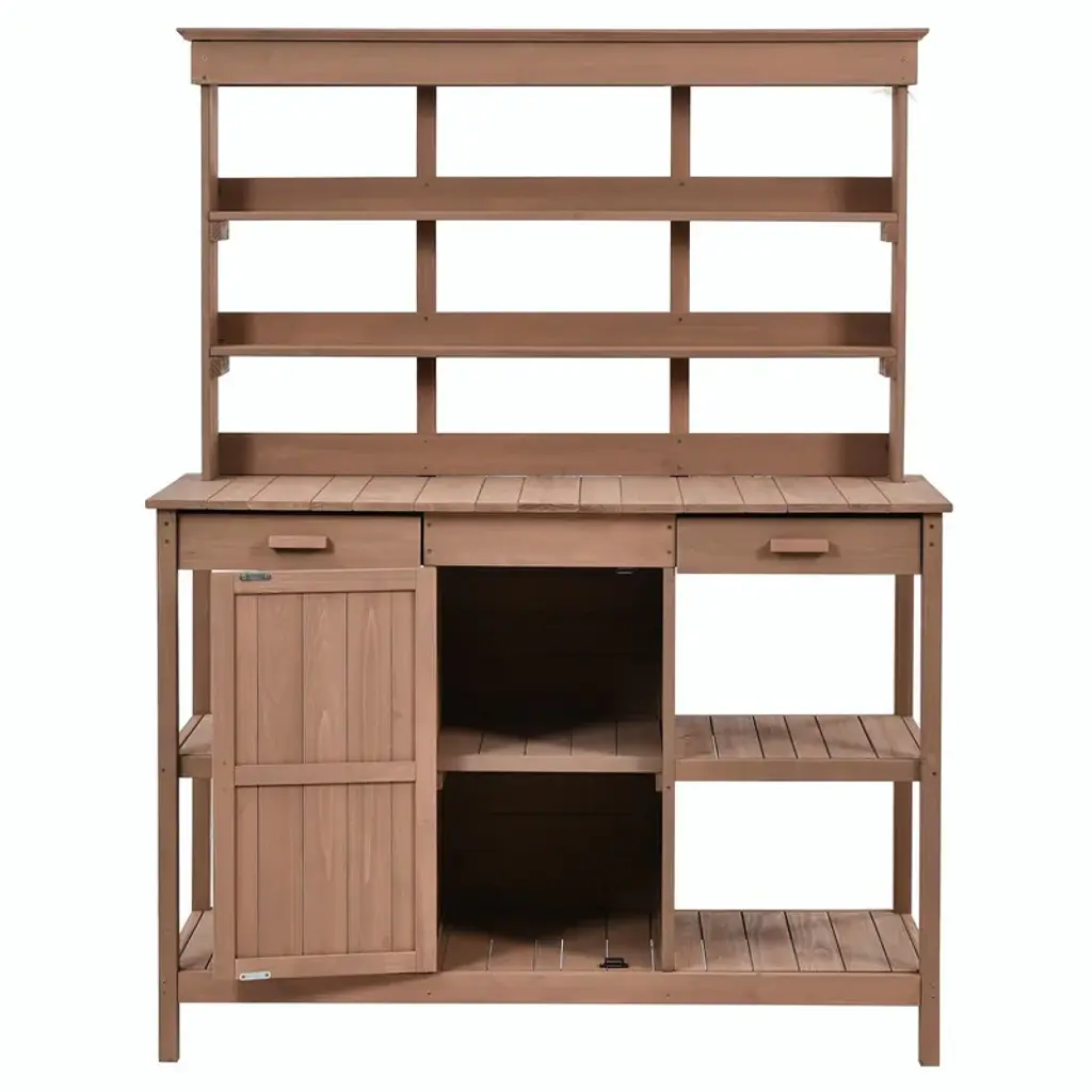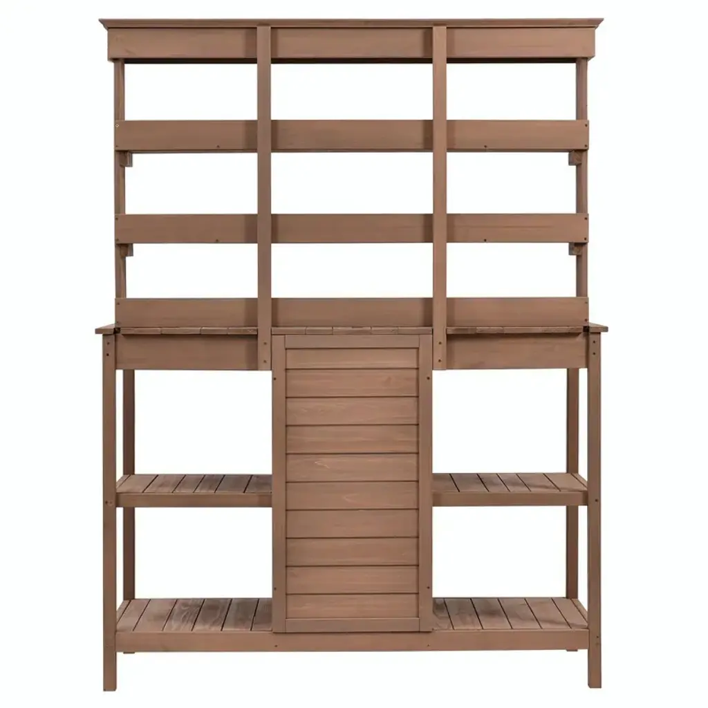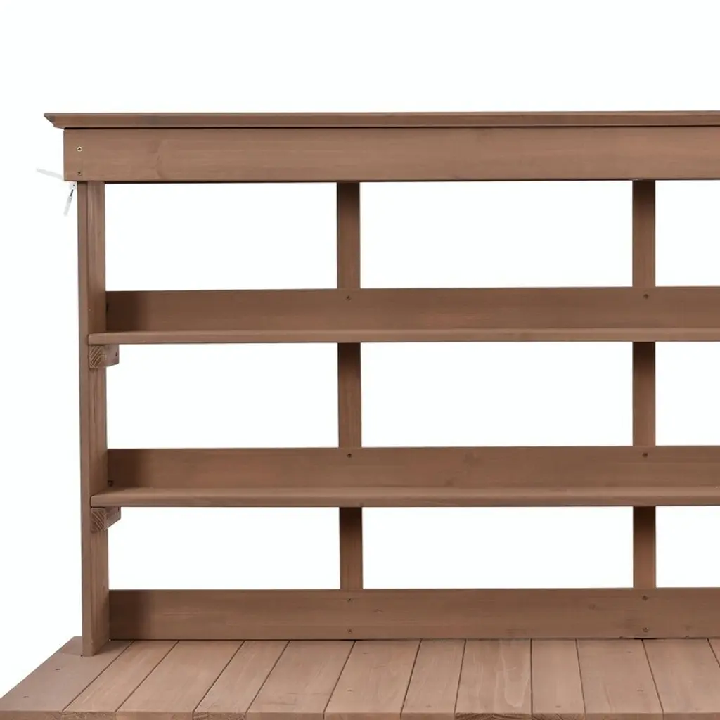 66" Large Outdoor Farmhouse Wooden Potting Bench - Brown