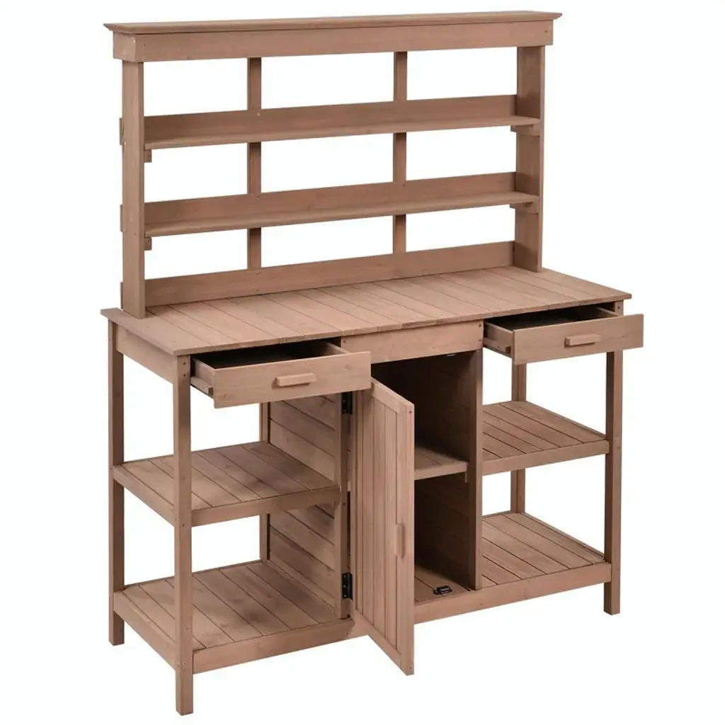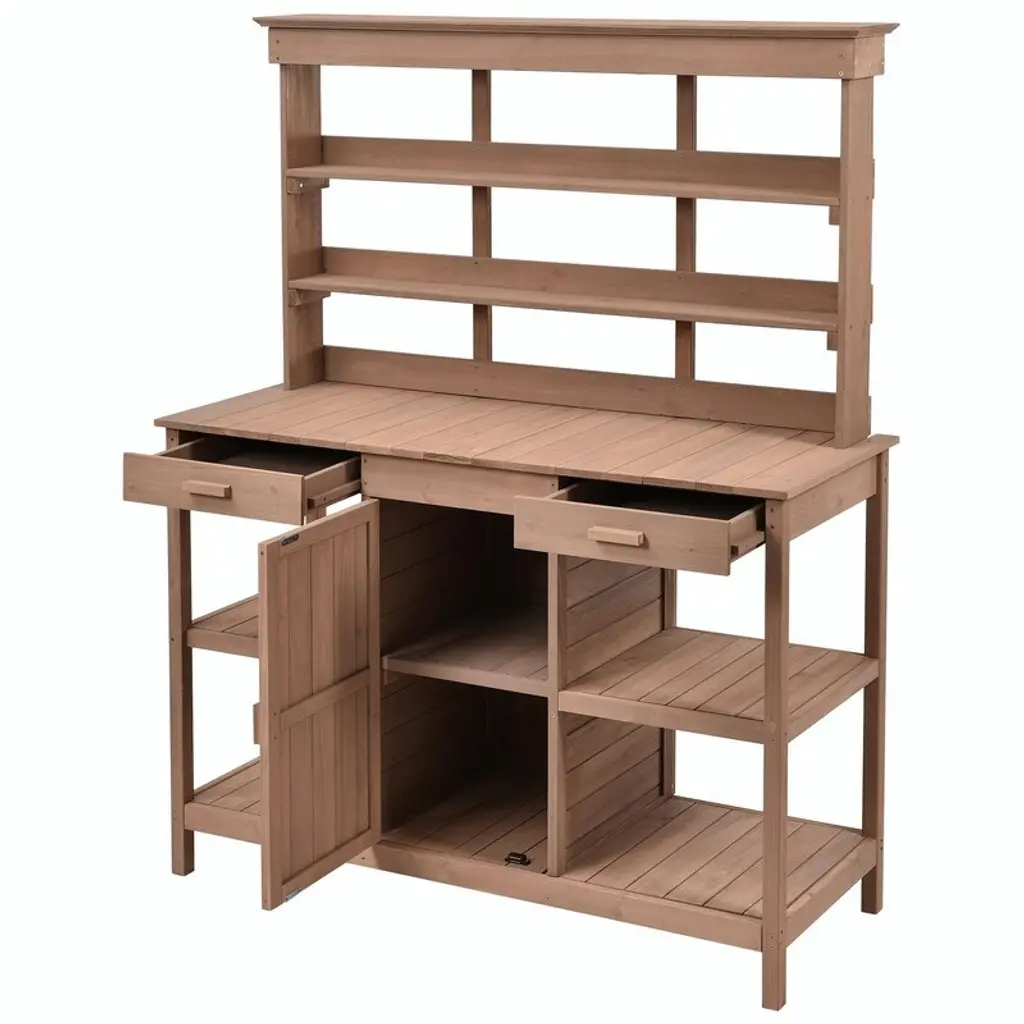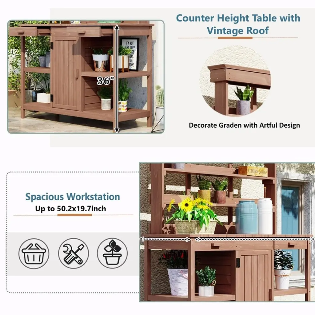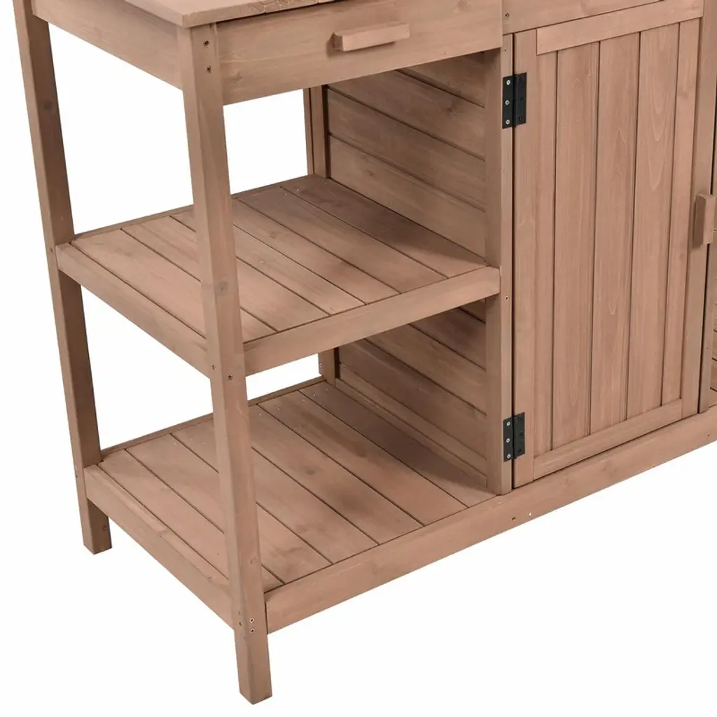 66" Large Outdoor Farmhouse Wooden Potting Bench - Brown