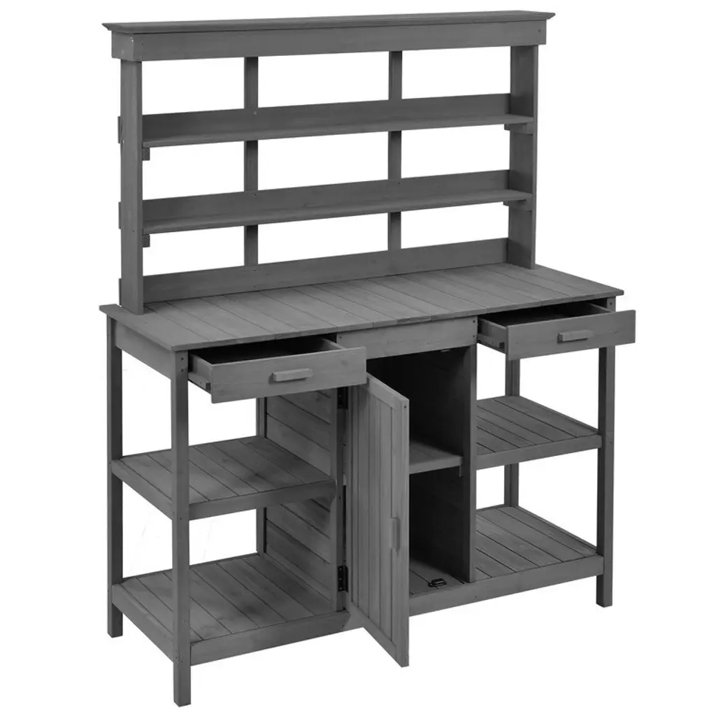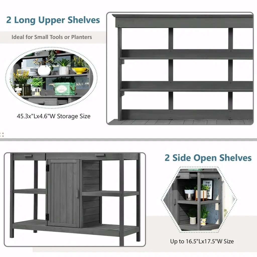 66" Large Outdoor Farmhouse Wooden Potting Bench - Grey