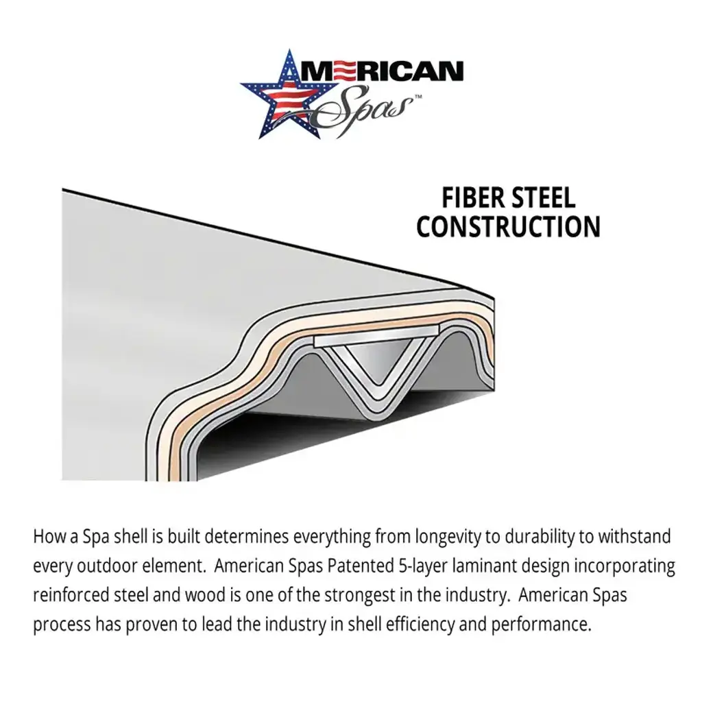This breathtaking AMZ740B 7 Person Bench Spa by American Spas has been designed to fit perfectly in any patio and blend with any backyard landscape. Relax with 40 jets specially crafted to maximize the spa performance and deliver high-quality relaxation and hydrotherapy experiences. Designed to go above and beyond expectations, this American Spas tub uses Fiber Steel Construction, a patented seven-layer laminate system reinforced with steel and wood for one of the strongest shells in the industry. To meet strict standards in efficiency, insulation and sanitation, this spa uses smart technology to run efficiently and use less energy. Insulation keeps hot water in and cold weather out to reduce power needs and the Energy Saver Thermo Layer Insulation blanket provides an extra layer of protection for your hot tub from the elements. With innovative features such as the HyroClear Ozonator, which purifies water using active ozone bubbles that keeps your water clean, clear, and sanitized for easy, hassle-free maintenance. To further reduce chemical usage and maintain the highest level of sanitation and convenience, the Bio Clean filter keeps the spa sanitized while minimizing chemical usage and keeps water crystal clean at all times. To protect your spa and investment, this spa will arrive with a premium Hydro-Armor tapered spa cover. Energy-efficient and rated to withstand 1,500 UV-hours of protection to prevent cracking, splitting or fading.