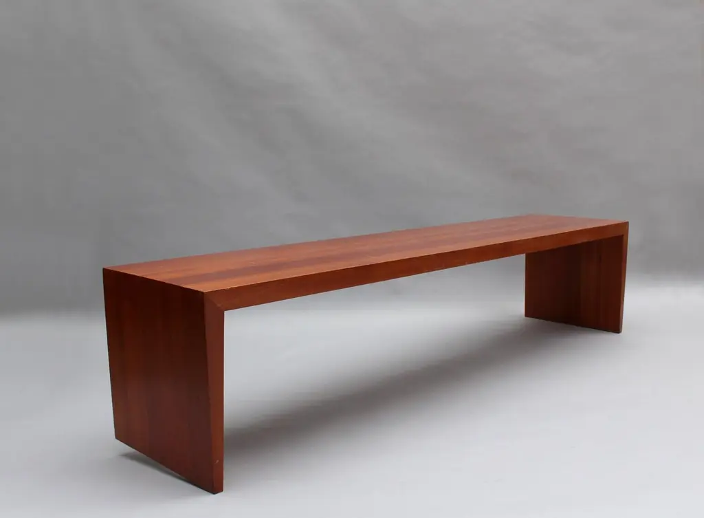 Model conceived in 1989 by the scenographer and designer Richard PEDUZZI (born in 1943) for the completion of the Grand Louvre project and deployed in 1993 in the rooms of the Egyptian arts department of the museum. These nine benches are made in solid cherry (not veneered as most of these museum benches).Price is per bench.
