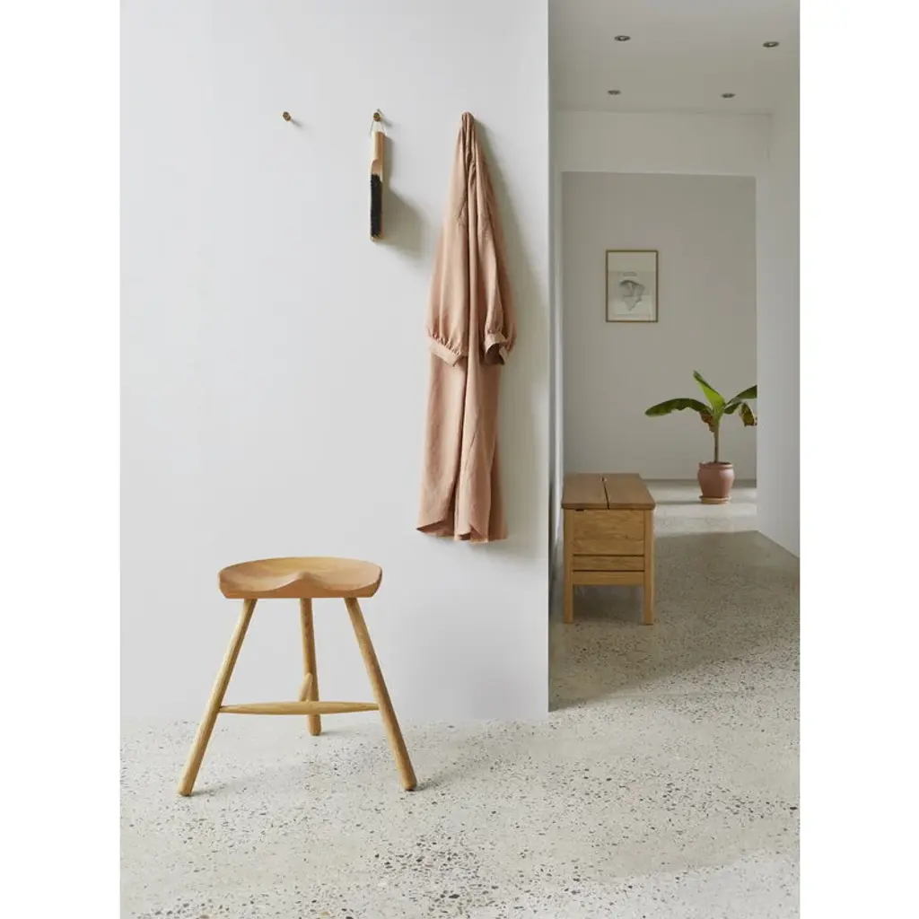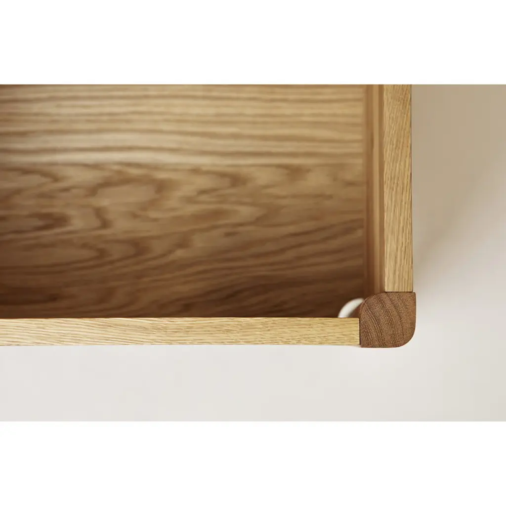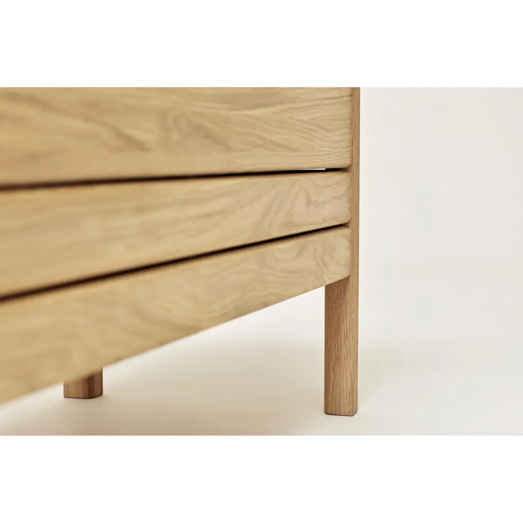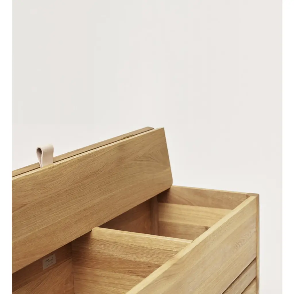 Form & Refine's A Line stowaway bench is constructed from solid oak and finished with a leather handle on the cover. When opened, the cover folds neatly behind the bench, revealing the two storage compartments inside. The compartments can be used, for example, for storing shoes and accessories in the hallway, bedding in the bedroom or supplies in the office. The bench can fit three persons. Form & Refine’s A Line collection pays respect to Danish woodworking traditions with its solid wood furniture, organic expression and timeless elegance. Designed by Herman Studio and manufactured in Europe, the A Line collection brings functional, contemporary Danish design to homes of all styles.