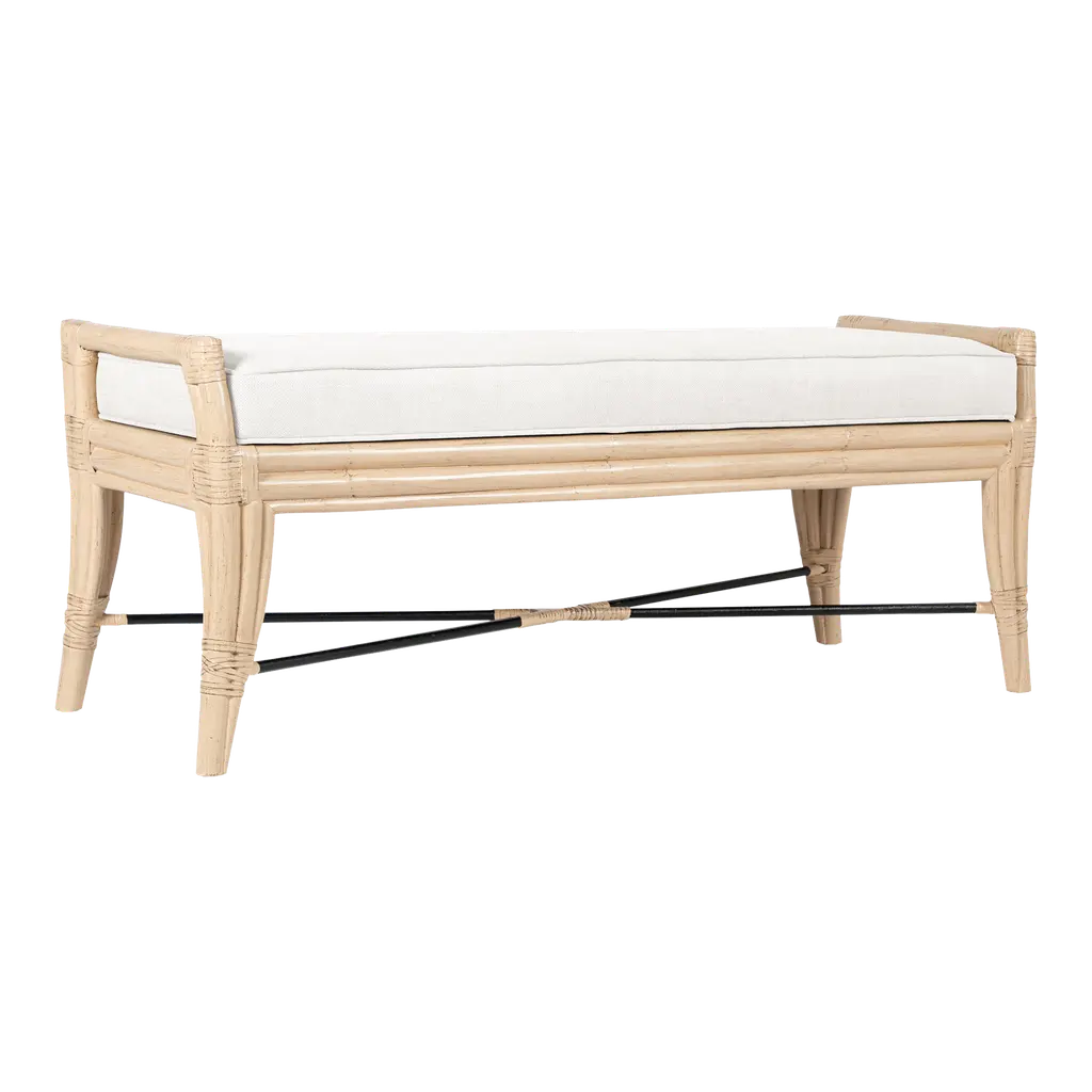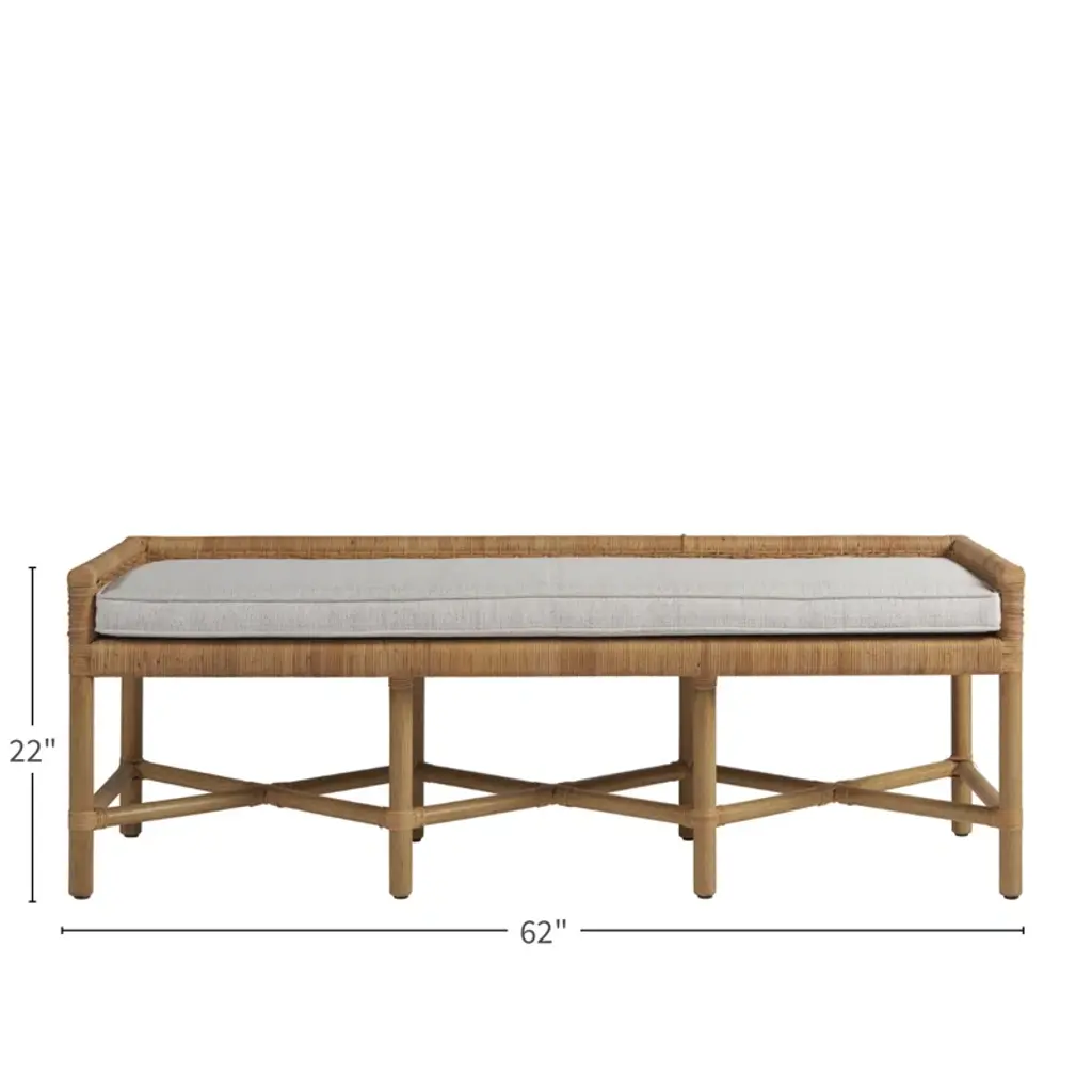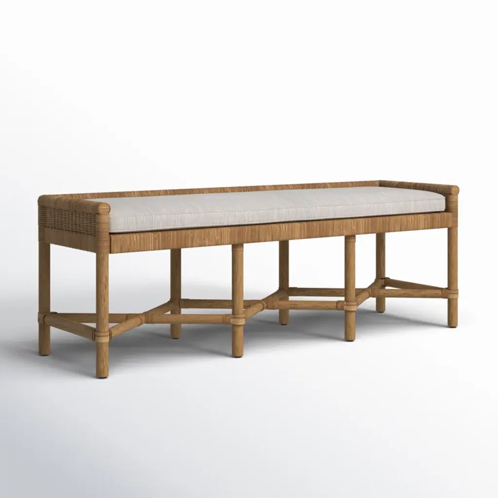 This bedroom bench has wicker details and crisscross accents that speak to its craftsmanship. It's meticulously made from high-quality wicker and pole rattan with a neutral brown wood grain that pairs well with any aesthetic. It's topped with a removable cushion for the kind of comfort we know you'll appreciate. This wooden bench also has a 400 lb. weight capacity and can seat up to two people at a time.