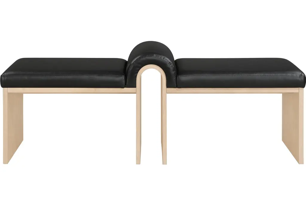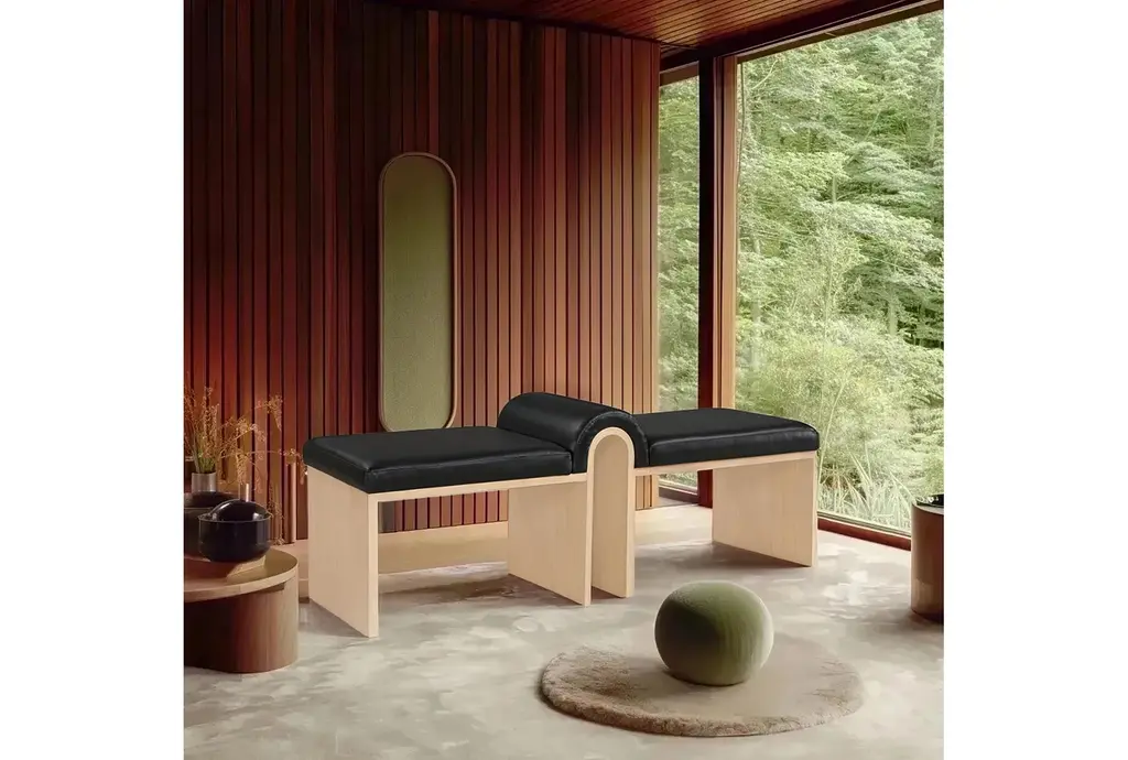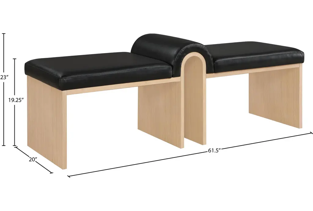 Aeris Black Vegan Leather Bench With Natural Finish Legs | Entryway