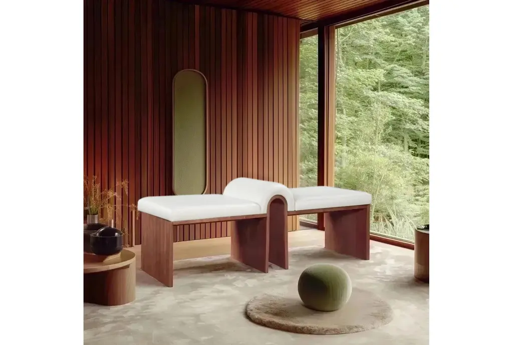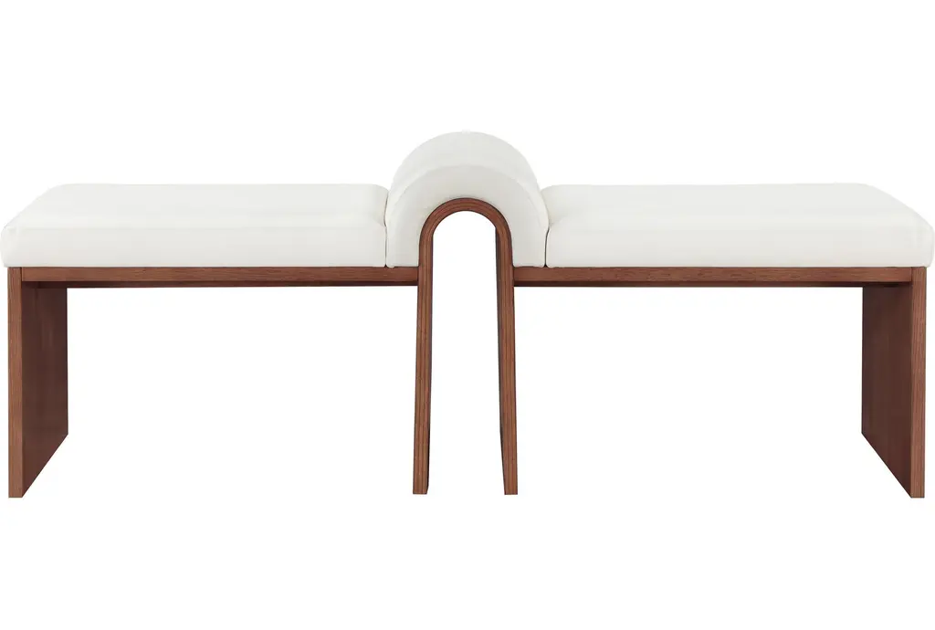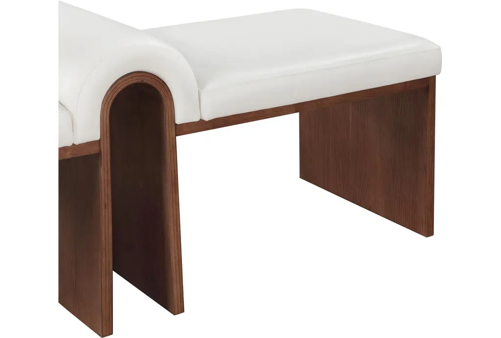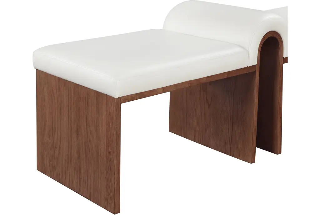 Aeris Cream Vegan Leather Bench With Brown Walnut Finish Legs | Entryway