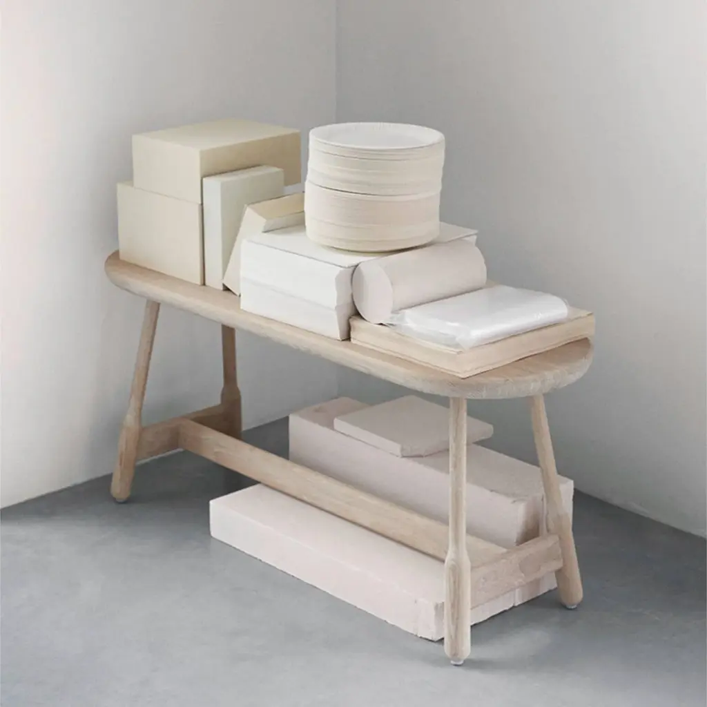Adapting a winsome piece of Brit iconography, Massproductions translates the pub stool as an impressively scaled bench. With the characteristic widening leg shape at the footrest now simplified from the original, Albert adds a contoured seat, all crafted in solid oak or beech. Timeless yet contemporary, the versatile seating comes in a range of desirable finishes.