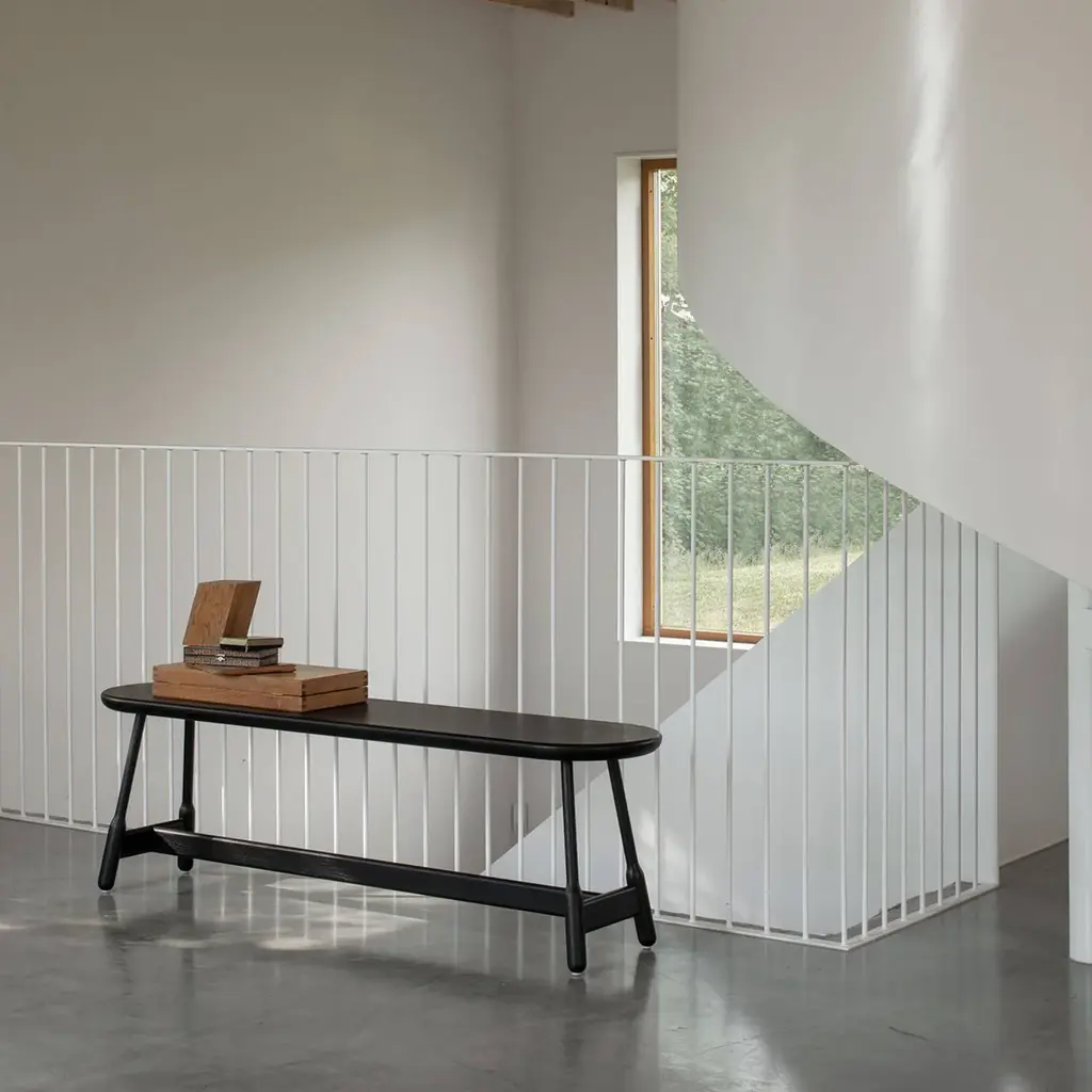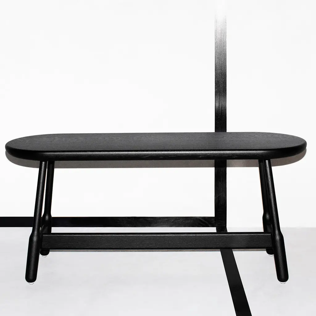 Adapting a winsome piece of Brit iconography, Massproductions translates the pub stool as an impressively scaled bench. With the characteristic widening leg shape at the footrest now simplified from the original, Albert adds a contoured seat, all crafted in solid oak or beech. Timeless yet contemporary, the versatile seating comes in a range of desirable finishes.