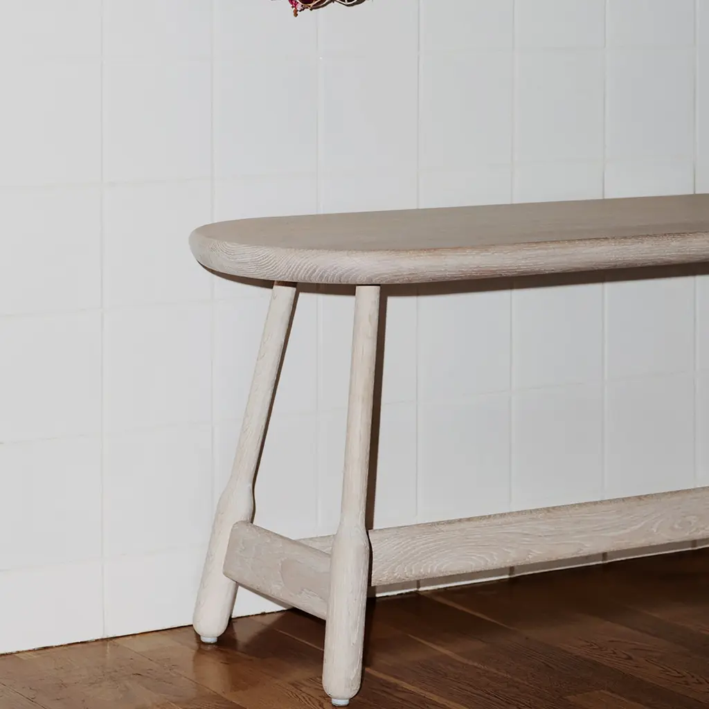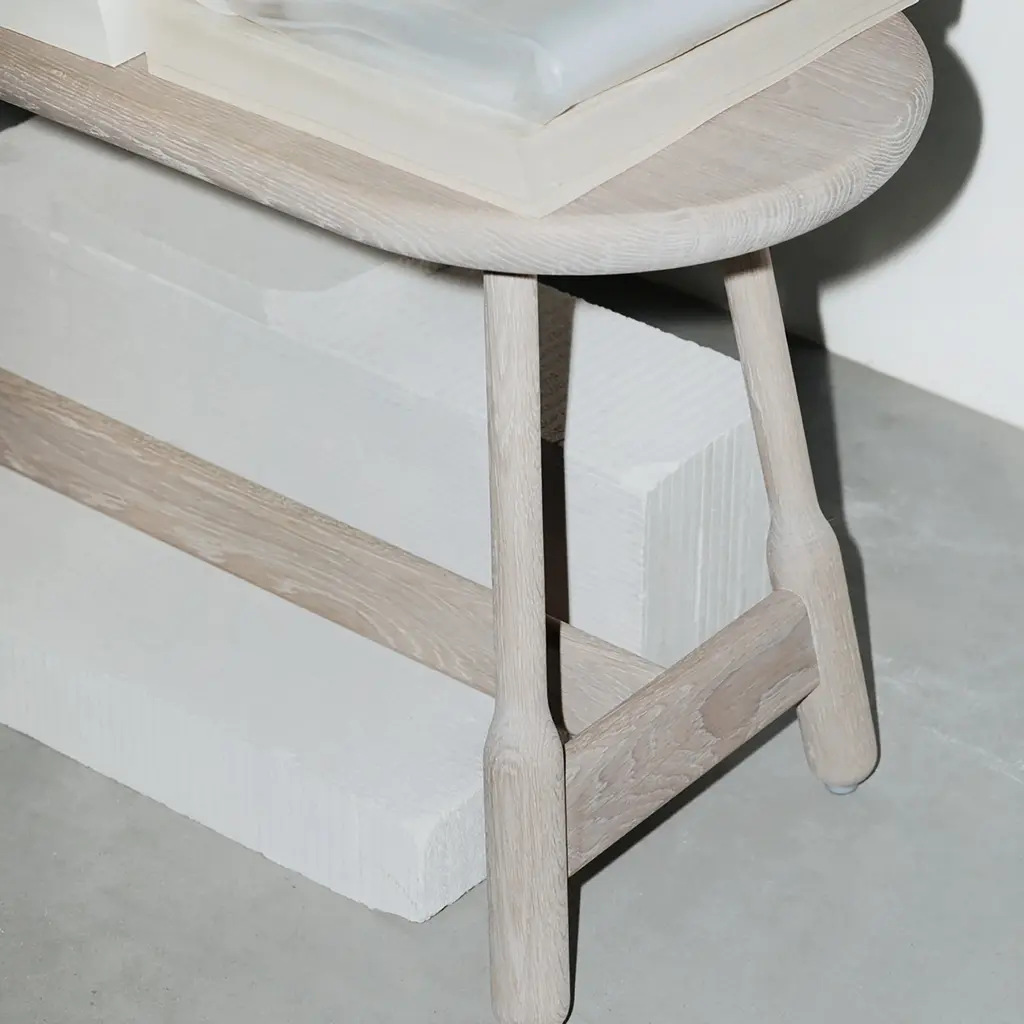 Adapting a winsome piece of Brit iconography, Massproductions translates the pub stool as an impressively scaled bench. With the characteristic widening leg shape at the footrest now simplified from the original, Albert adds a contoured seat, all crafted in solid oak or beech. Timeless yet contemporary, the versatile seating comes in a range of desirable finishes.