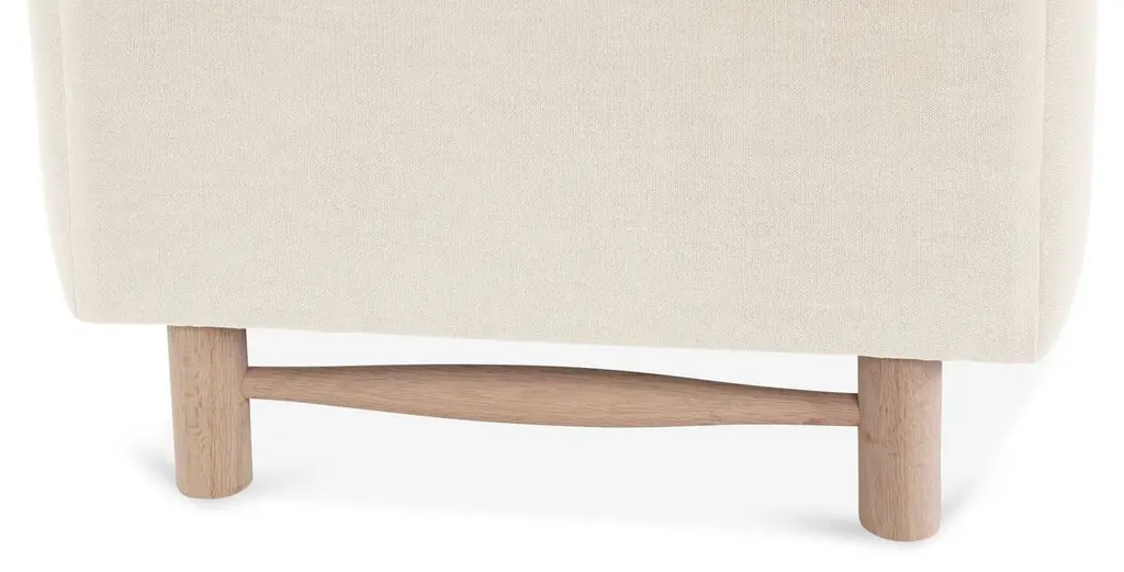 Designed by us and available only at One Kings Lane: Detailed with quilted channeling and mocha-finished alder legs, this bench lends a modern mood to any space. Its white linen upholstery is filled with foam and bolstered to a sturdy alder frame for long-lasting comfort and support. Made in the USA.