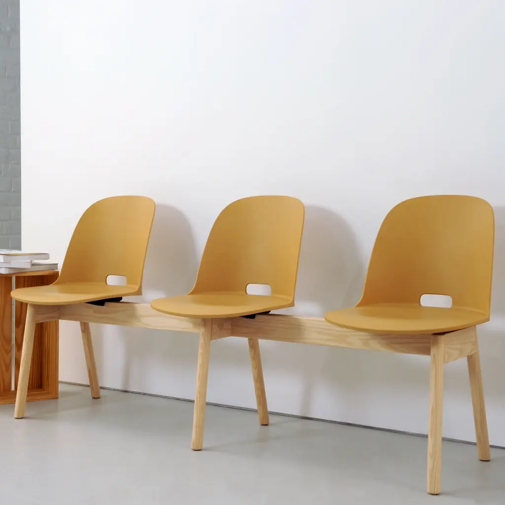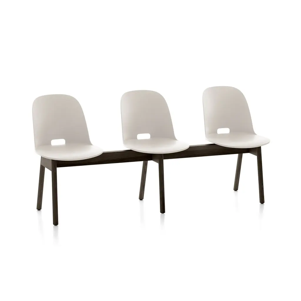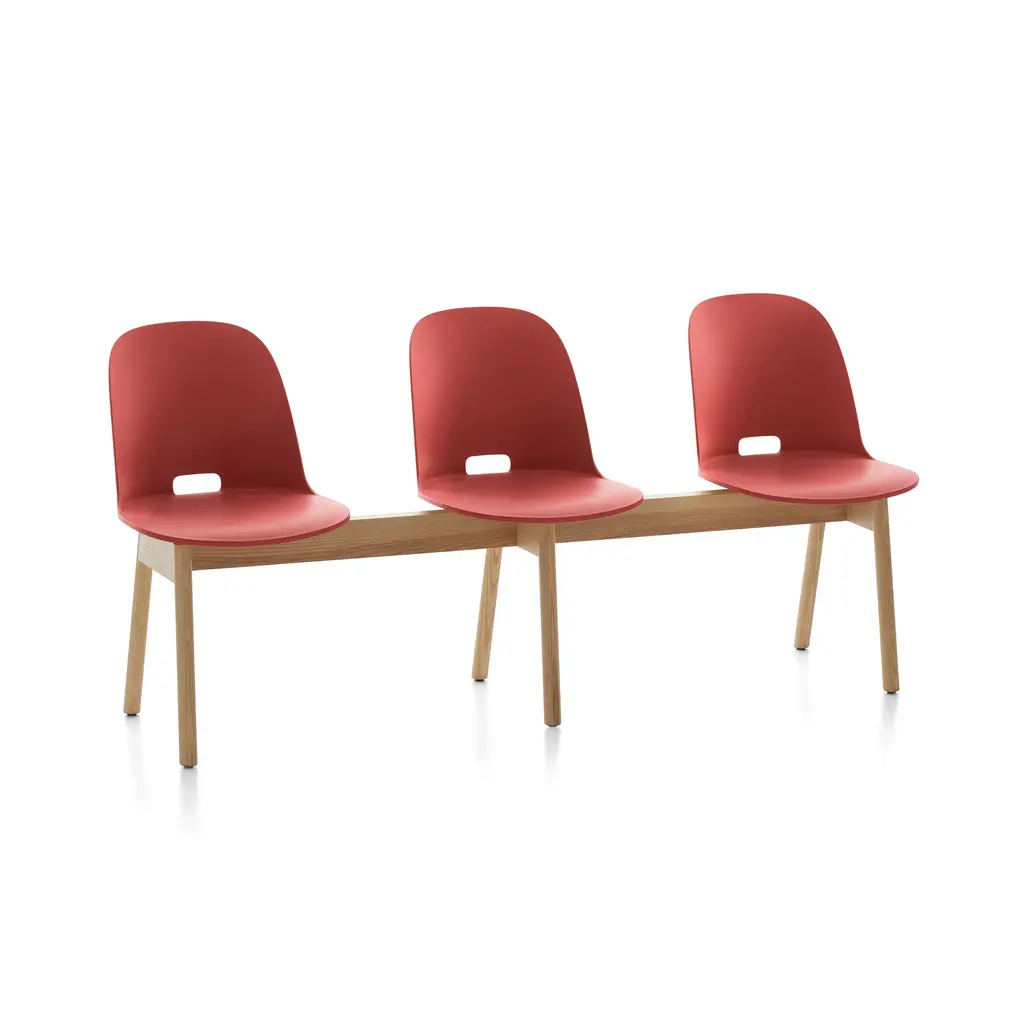 A collaboration between Emeco and Jasper Morrison, the Emeco ALFI Collection exemplifies Emeco’s interest in creating handsome, sustainably-sourced and durable modern furniture. Driven by a conviction that what you don’t see is as important as what you do see, the Emeco and Morrison partnership has arrived at a modern seating collection that embodies simplicity, precise workmanship, and responsibly sourced materials. Crafted from a wood-and-plastic composite, engineered from material obtained directly from woodshops and plastic producers, the Emeco ALFI Collection features 3 modern chairs (low back, high back, and armchair), two contemporary stools, and a three-seat bench, each model available in both high back and low back versions. Features