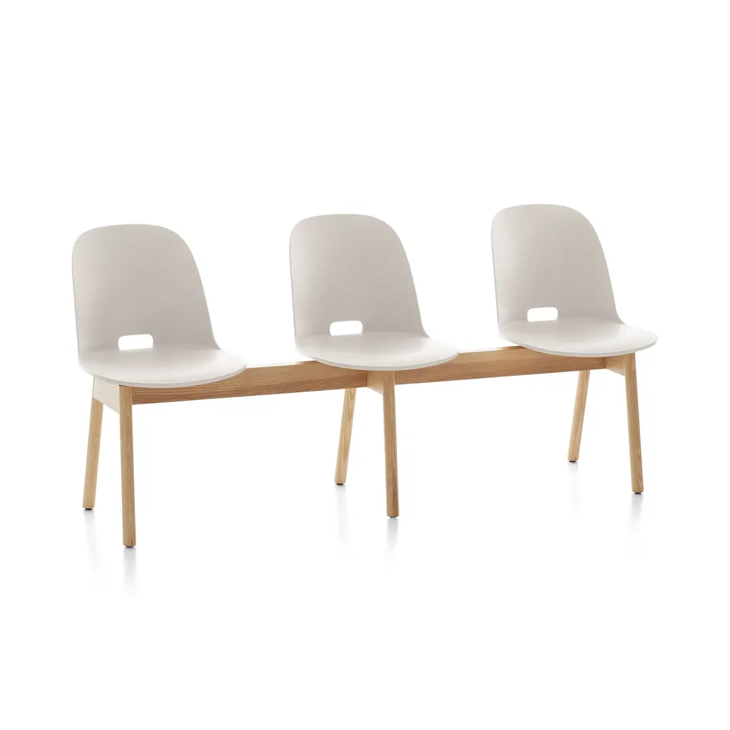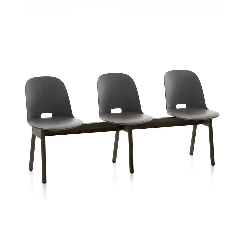 A collaboration between Emeco and Jasper Morrison, the Emeco ALFI Collection exemplifies Emeco’s interest in creating handsome, sustainably-sourced and durable modern furniture. Driven by a conviction that what you don’t see is as important as what you do see, the Emeco and Morrison partnership has arrived at a modern seating collection that embodies simplicity, precise workmanship, and responsibly sourced materials. Crafted from a wood-and-plastic composite, engineered from material obtained directly from woodshops and plastic producers, the Emeco ALFI Collection features 3 modern chairs (low back, high back, and armchair), two contemporary stools, and a three-seat bench, each model available in both high back and low back versions. Features