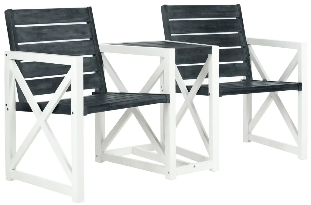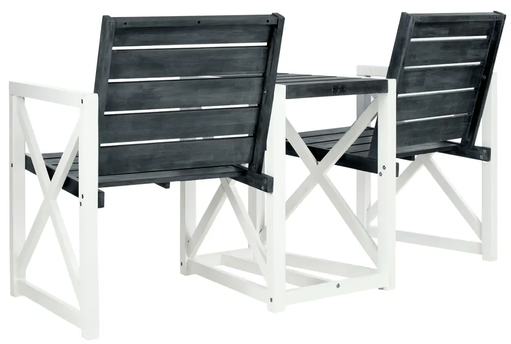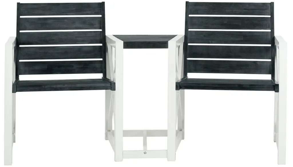 Good things come in pairs. The Jovana Two Seat Bench is the epitome of contemporary style. A sublime fusion of form and function, it offers two full-sized, sturdy seats crafted with acacia wood and galvanized steel— connected by a petit table perfect for warm weather cocktails. Store outdoor furniture indoors or cover well when not in use. Remove wooden furniture from standing water. Dust regularly with small brush or vacuum. Spills should be taken care of immediately before they harden or stain with a slightly dampened sponge. Do not use bleach solutions. Some assembly required.