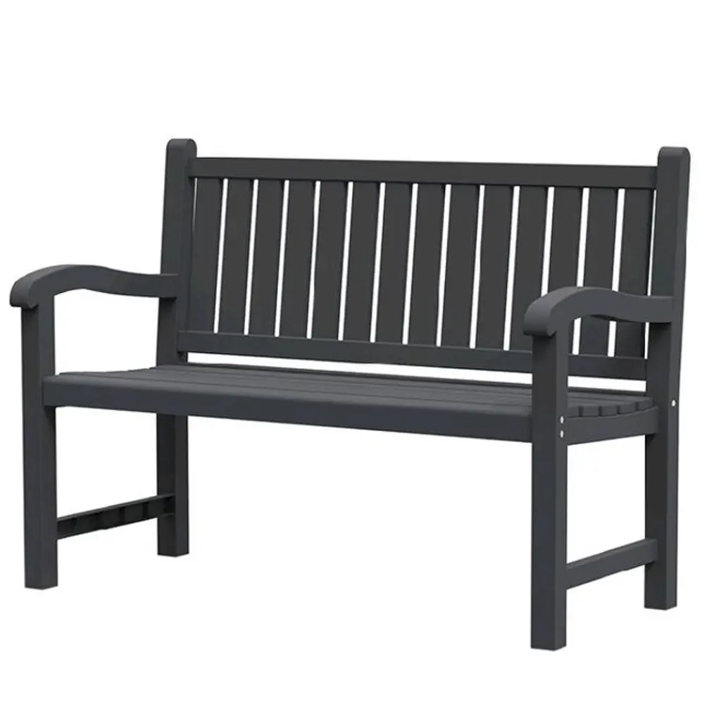 All-Weather Resin Wood-Look Bench For Two - 500 Lbs Capacity, Rust-Proof Metal Frame, Outdoor/indoor Seating - Antique Black
