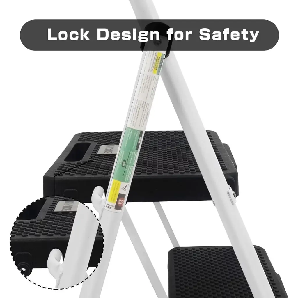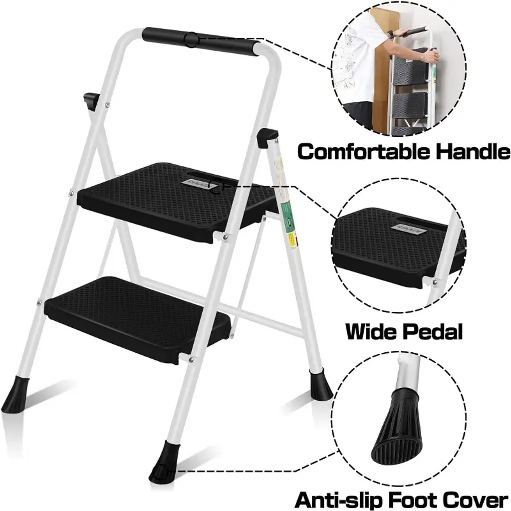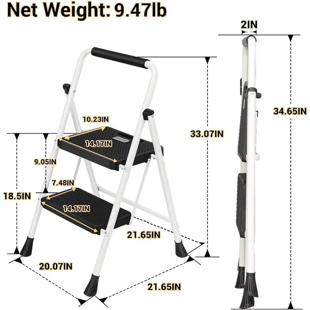 This 2-level anti slip steel folding ladder with dual functions of stairs and stools is made of high-quality steel as the core material, paired with a humanized handle design. It not only meets the safety needs of daily high-altitude operations, but also adapts to various spaces with its lightweight folding characteristics, becoming a practical tool for home, office, shop and other scenarios.