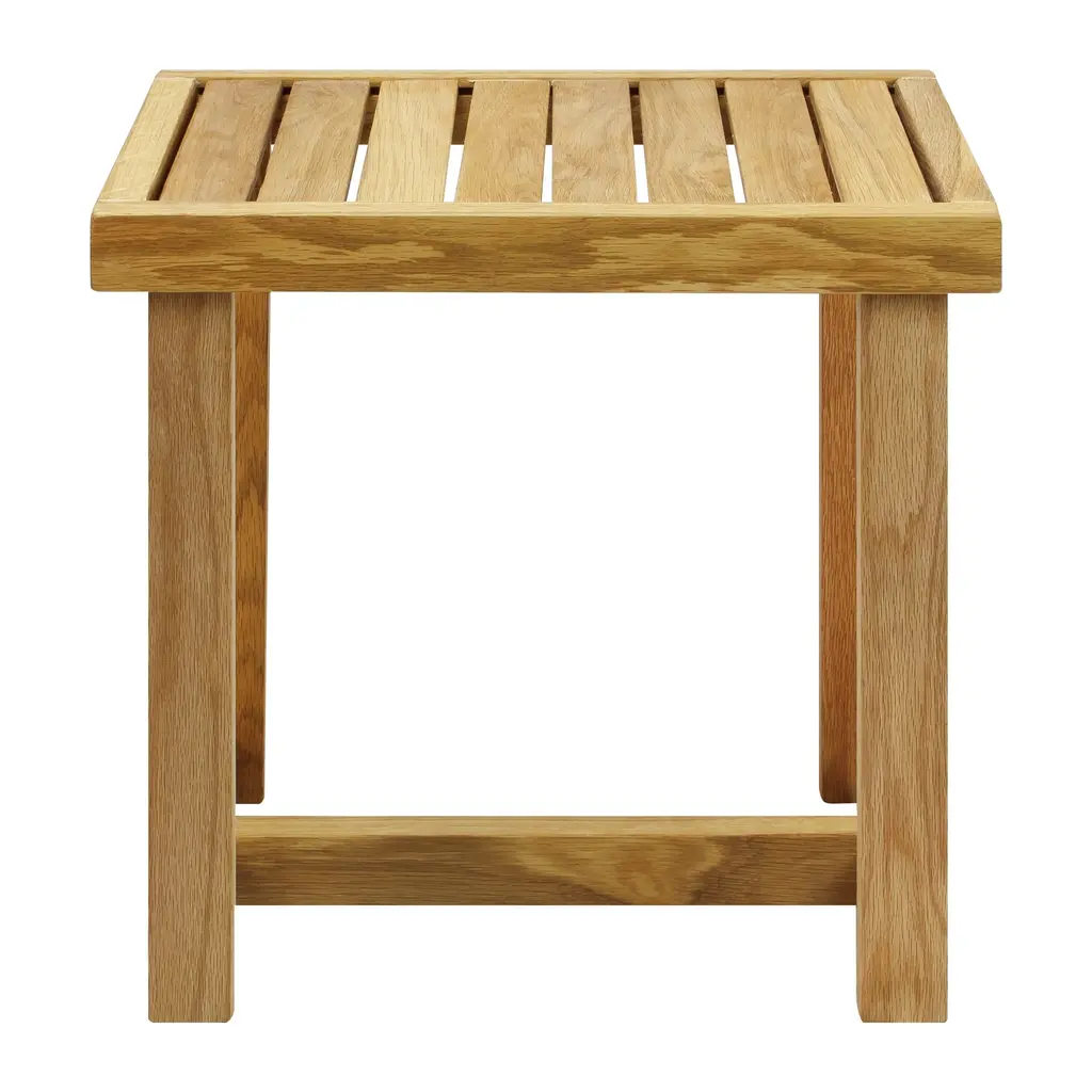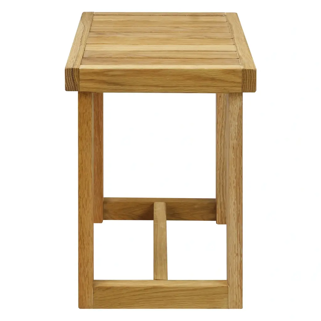 This White Oak Shower Bench made from Solid American White Oak is a classically quaint accessory for your bathroom or home. Classic design provides a pleasant place to sit, store, or decorate with grace. Natural oil finish adds an earthy, peaceful touch and doubles as a protective agent against the elements. Features: Natural Oil finish highlights beauty while protecting against the elements. Mission style design provides balanced support. Provides an extra spot to sit, store, or decorate. 4-leg design with cross-leg reinforcement system. Made of Solid American White Oak for superior strength and longevity. Light Assembly. Product Dimensions: 18"W x 13"D x 18"H Weight: 10.75 lbs
