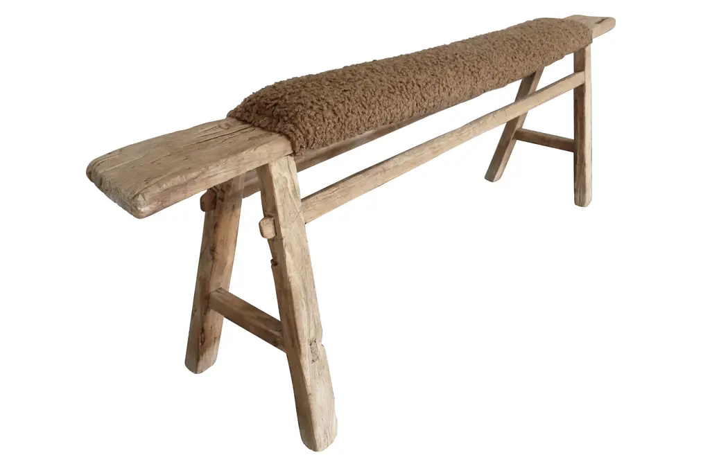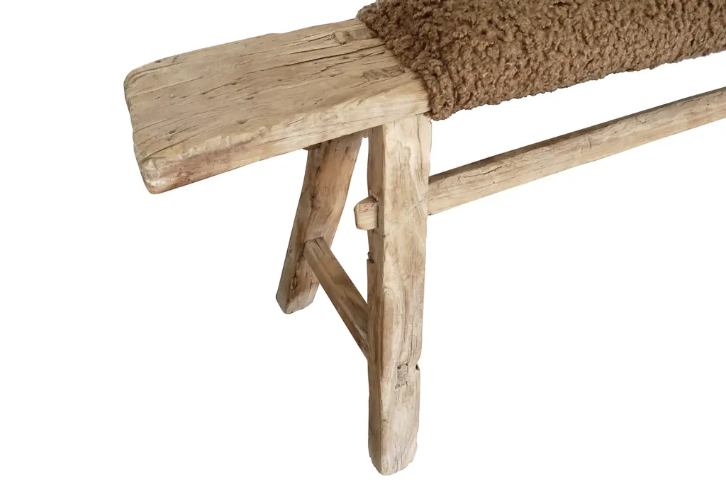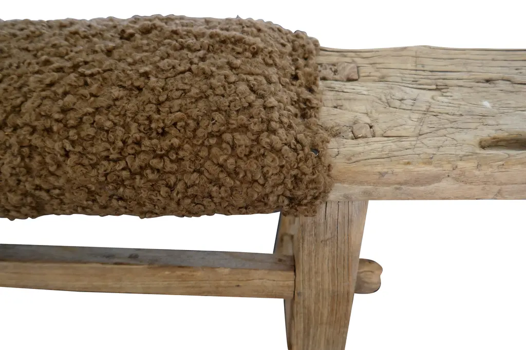 Antique Shandong Bench With Mocha Sherpa