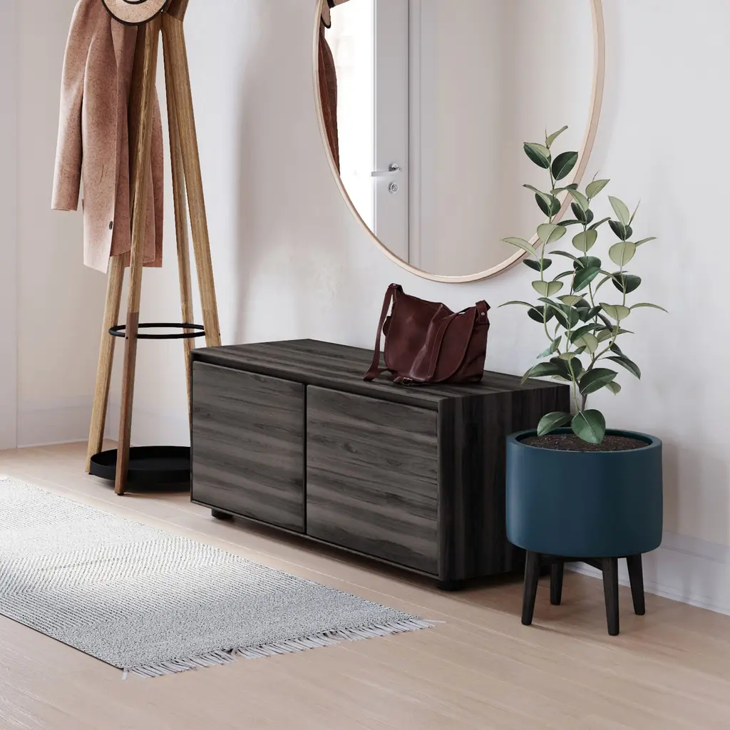 It's the perfect hall or entryway addition. Storage cabinets hold shoes & accessories. Made of sustainably sourced wood. Contract Grade, so you know it's built to last.