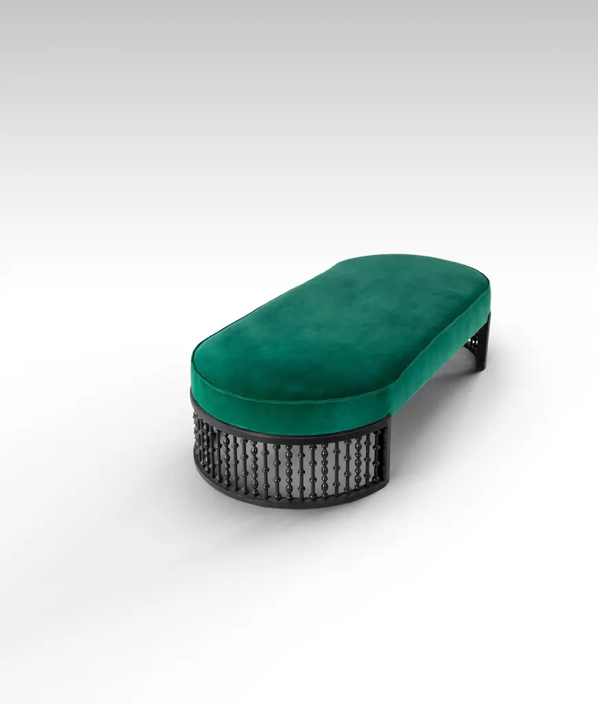 Arabesque-Inspired Bench With Lacquered Wood And Velvet Upholstery