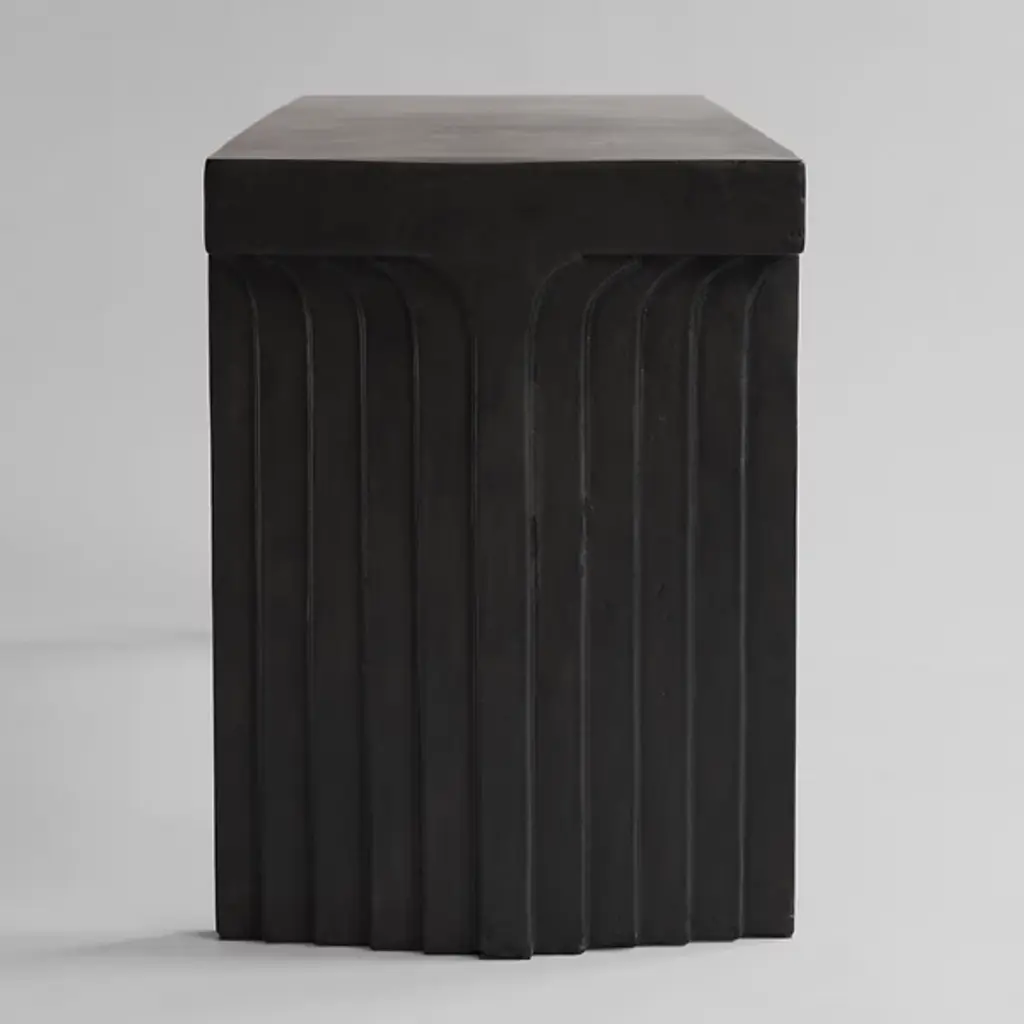 Inspired by the Art Deco period, the Arc Bench from 101 Copenhagen transforms lavish architectural details into minimalist furniture. It features the signature steps and arches, adding depth and a dynamic play of shadows. Crafted entirely from cast fiber concrete, this bench contrasts with the optional cushion. The rectangular cushion, made of foam and upholstered in chalk-colored linen fabric, enhances comfort while beautifully complementing the smooth concrete surface for a refined, tactile experience.