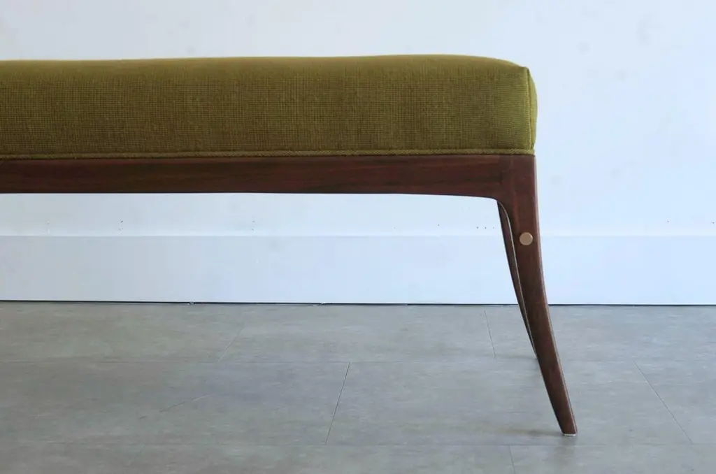 A sculptural bench defined by its gracefully arched legs and clean, modern lines. Designed for both form and function, the ARC Bench offers a striking profile while maintaining everyday usability.Crafted from solid wood, the bench is reinforced by a custom metal stretcher—an architectural detail that adds both strength and sophistication. The generously upholstered cushion provides comfort and visual balance.Inspired by the timeless elegance of T.H. Robsjohn-Gibbings’ Klismos Collection, the ARC Bench reinterprets classical design through a contemporary lens.Customize your bench with a range of wood and metal finishes. View all images for available finish options.Available COM or COL only (3 yards). Please contact us for custom dimensions tailored to your space.