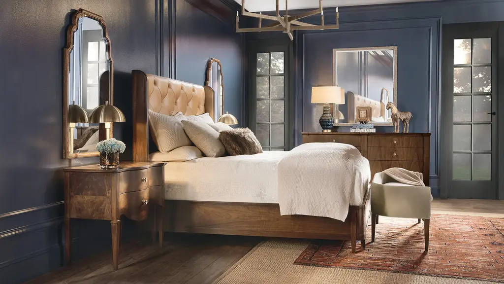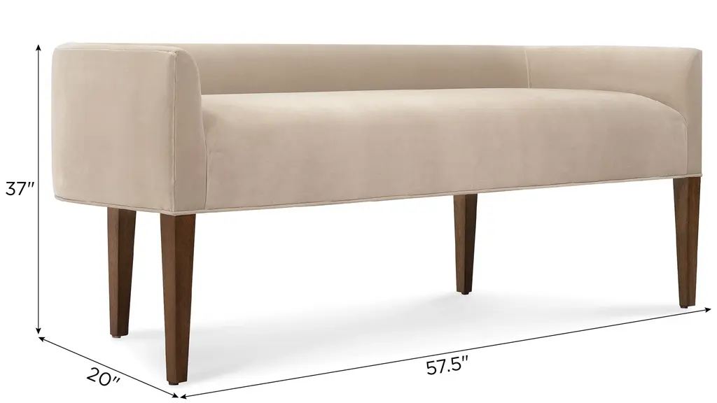 The Archives Bed Bench combines functionality with elegance. Upholstered in Liber Oat velvet, this performance fabric bench offers a soft, inviting seat, complemented by a low back and tapered wood legs. Finished in Classic Walnut, the bench is perfect for a bedroom setting, adding both style and comfort.